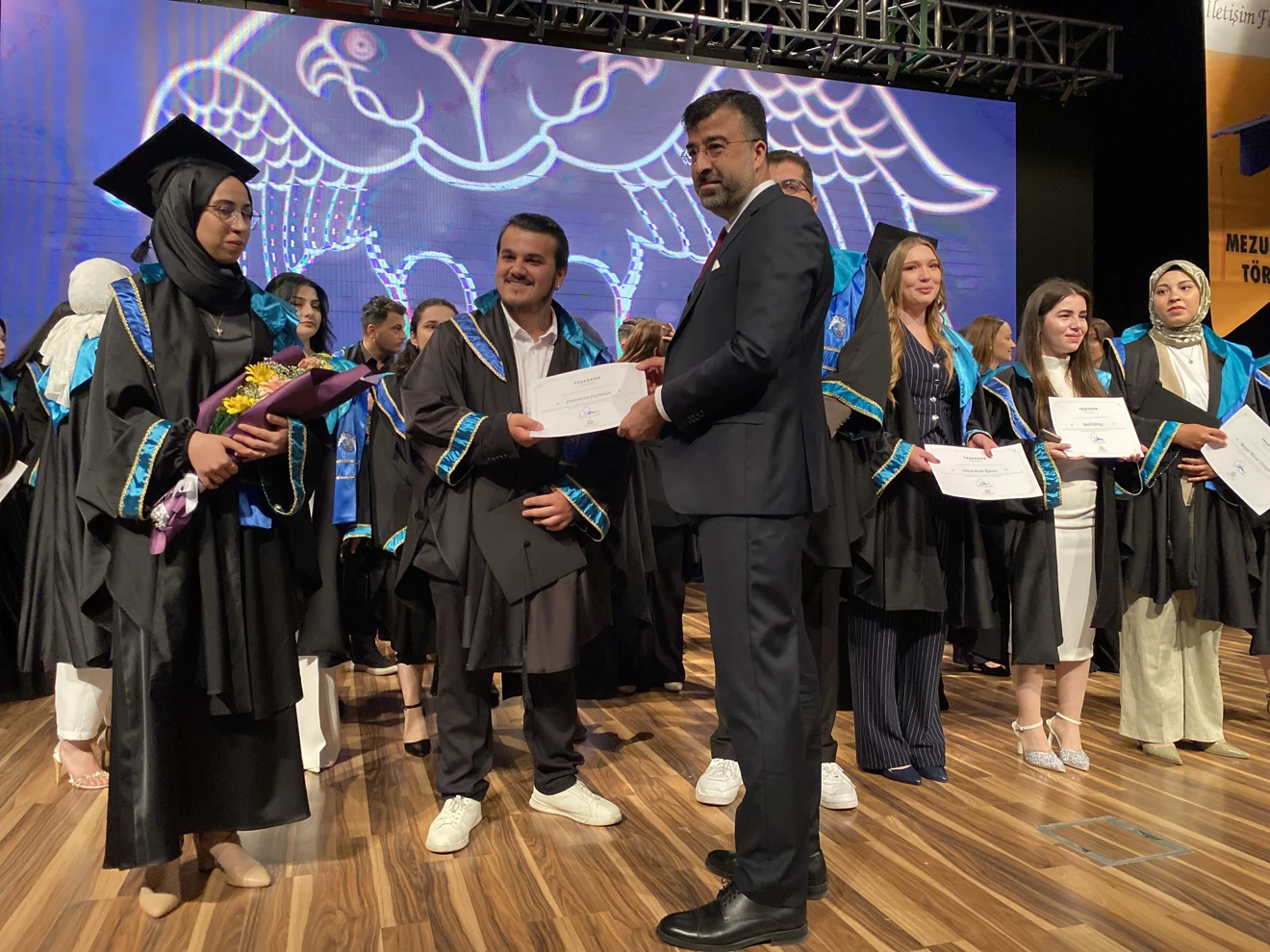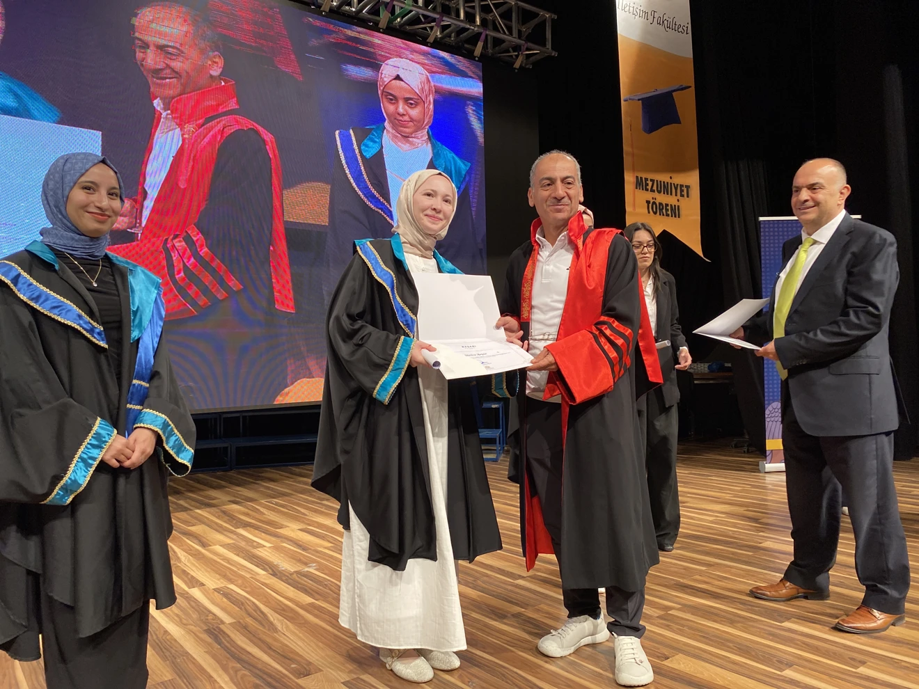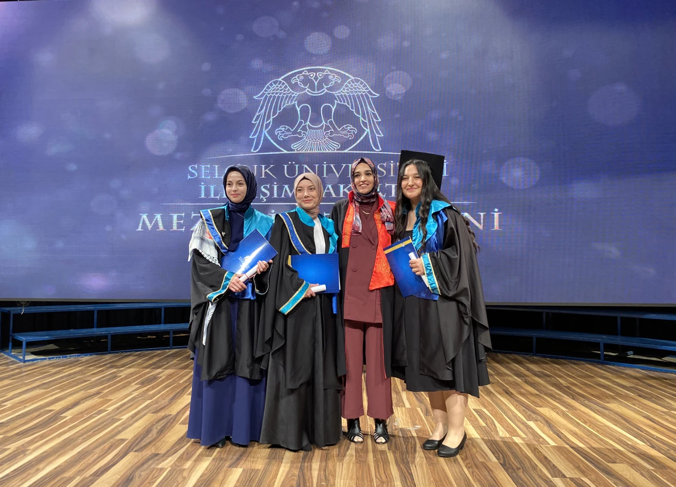 Fakültenin uygulama birimlerinde görev alan öğrencilere teşekkür belgeleri sunulan törende, tüm öğrencilere diplomaları takdim edildi. Halkla İlişkiler ve Tanıtım, Radyo, Televizyon ve Sinema, Gazetecilik ve Reklamcılık Bölümlerinden toplam 400’ü aşkın öğrenci törende yer aldı. Diplomalarını alan öğrenciler, akademisyenler ve aileleriyle bu özel anı ölümsüzleştirdiler.