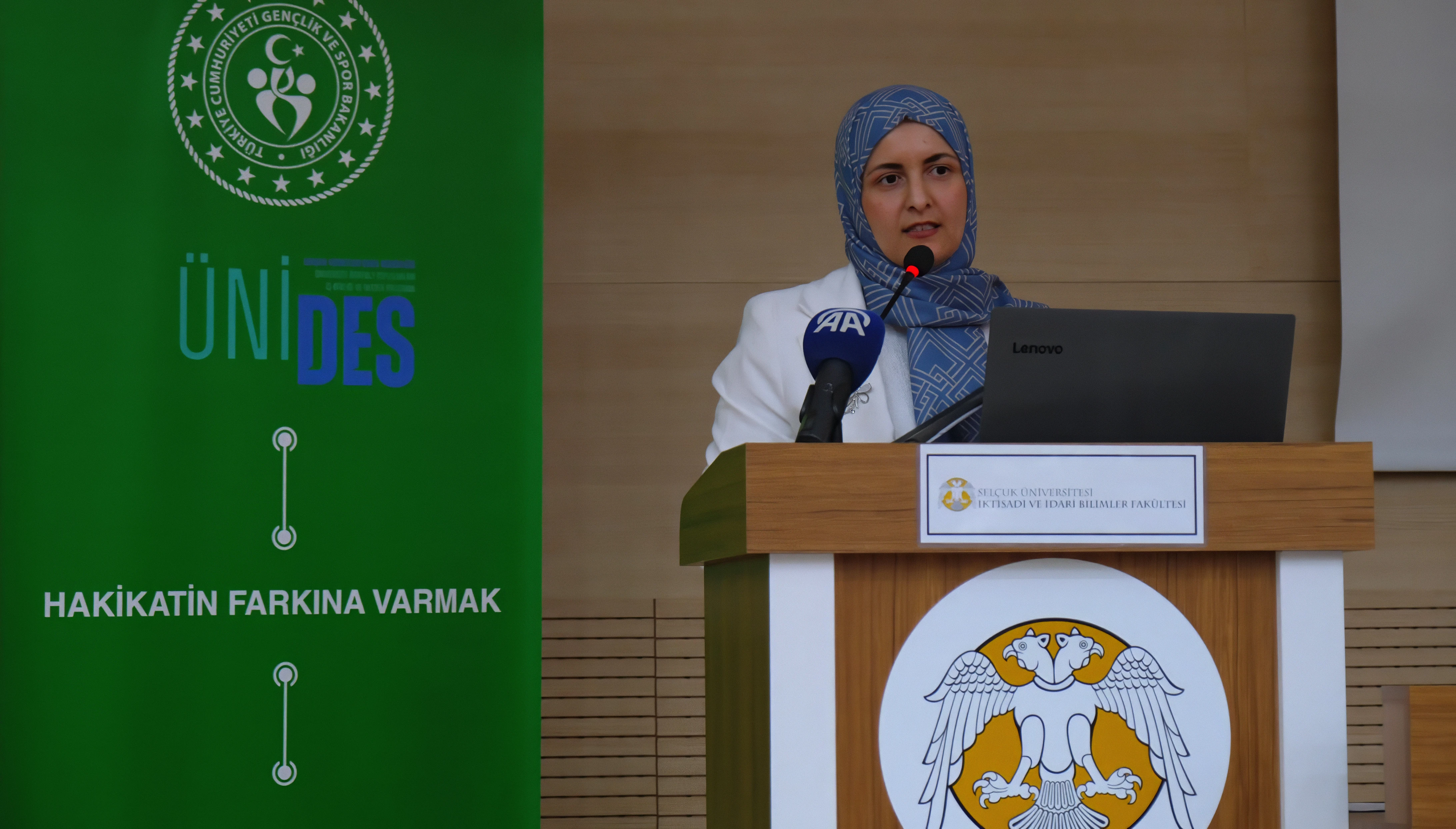 Gençlik ve Spor Bakanlığı tarafından desteklenen 5. Dönem ÜNİDES projeleri kapsamında düzenlenen ‘Hakikatin Farkına Varmak’ projesinin eğitim semineri; İletişim Fakültesi Dekanı Prof. Dr. Vedat Çakır, İktisadi ve İdari Bilimler Fakültesi Dekanı Prof. Dr. Savaş Erdoğan, Cumhurbaşkanlığı İletişim Başkanlığı Konya Bölge Müdürü Tuncay Karabulut, Cumhurbaşkanlığı İletişim Başkanlığı Dezenformasyonla Mücadele Merkezi uzmanları, akademisyenler ve öğrencilerin katılımıyla İktisadi ve İdari Bilimler Fakültesi Prof. Dr. Şahabettin Yiğitbaşı Konferans Salonu’nda gerçekleşti.