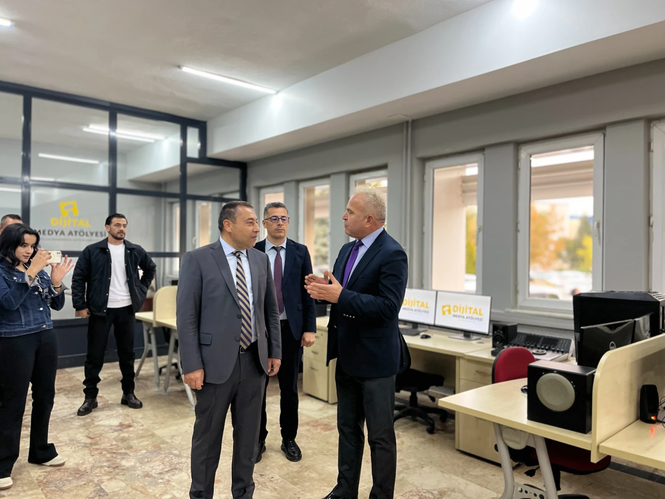İletişim Fakültesi öğretim elemanlarının sorularının cevaplanmasının ardından, Rektör Yardımcısı Prof. Dr. Haldun Soydal, Dijital Medya Atölyesini ziyarette bulundu.