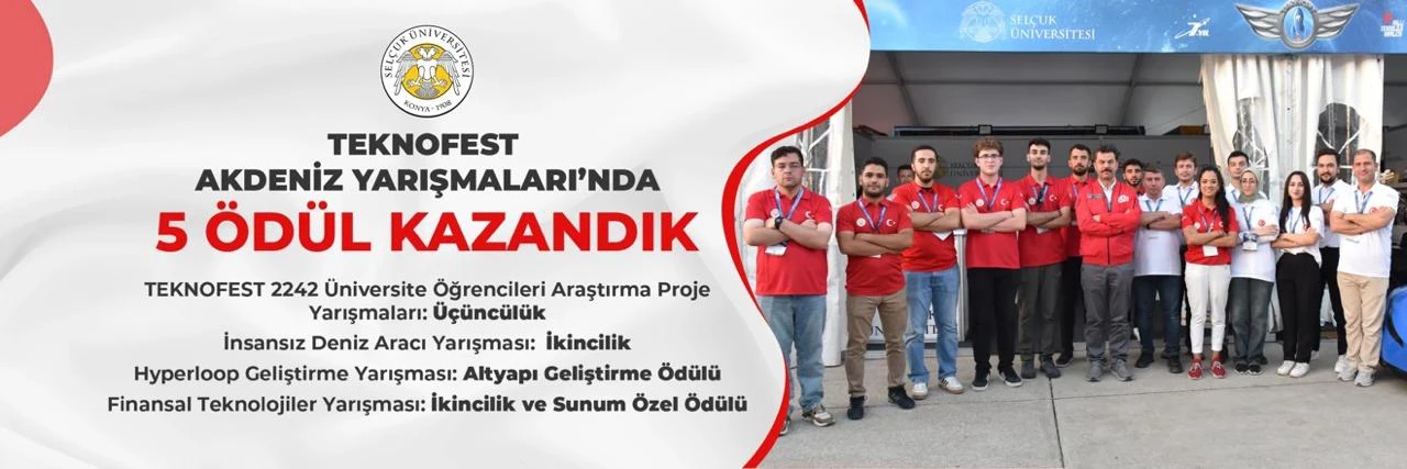 Teknofest Akdeniz Yarışmalarında Selçuk Üniversitesi'nin kazandığı tüm ödülleri Teknoloji Fakültesi öğretim elemanları ve öğrencileri kazandı.