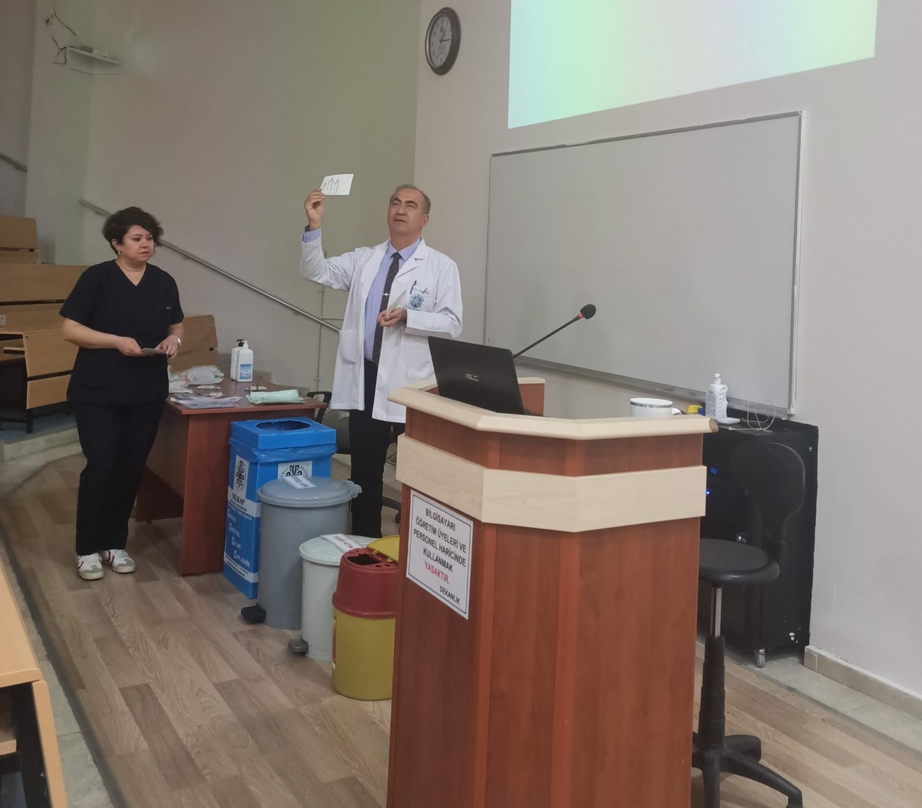 Fakültemizde Enfeksiyon Kontrol Komisyon Başkanı Prof. Dr. Onur Ural tarafından intörn doktorlara 17 Mayıs 2023 tarihinde Dönem 3 amfisinde enfeksiyon kontrol yöntemleri anlatıldı.