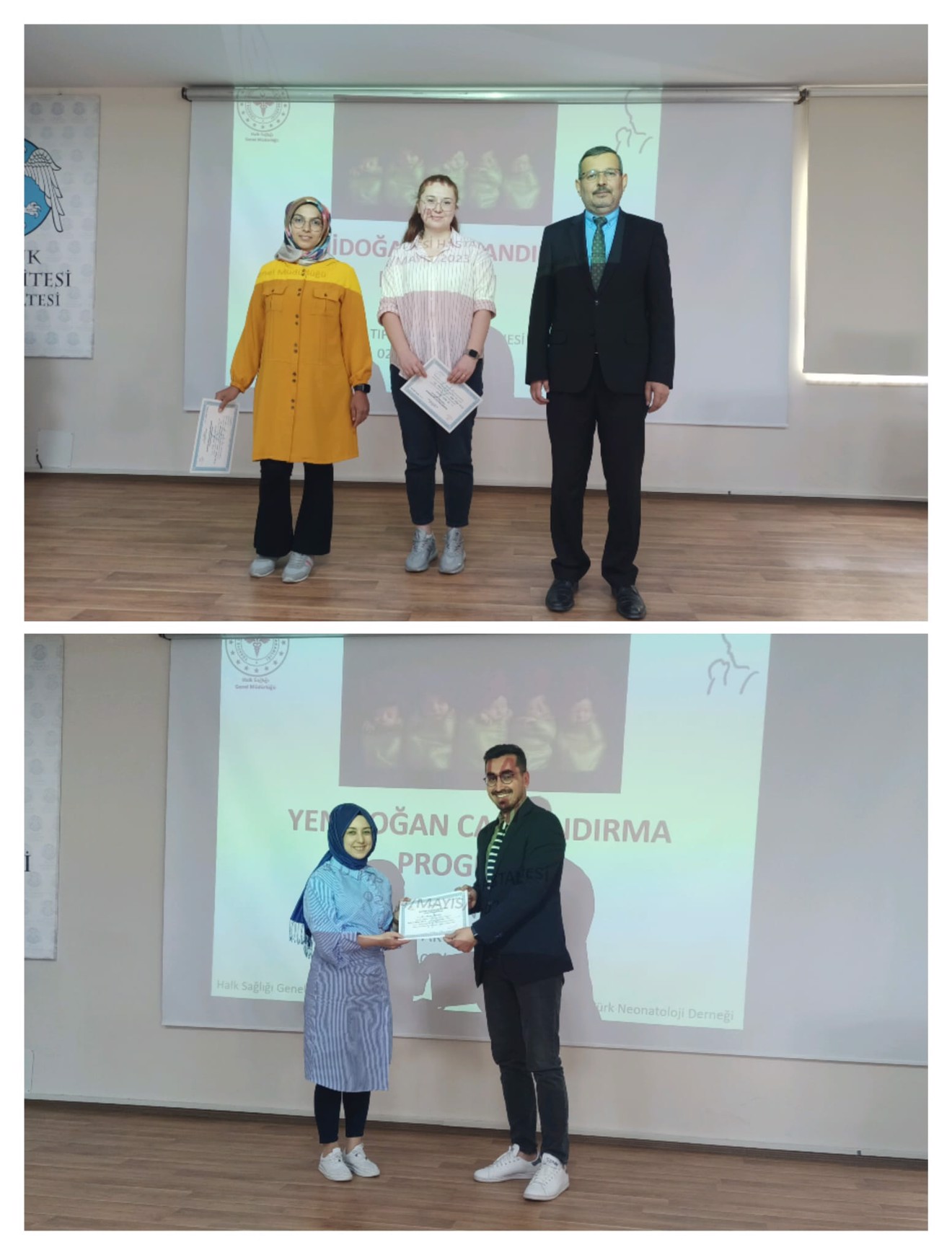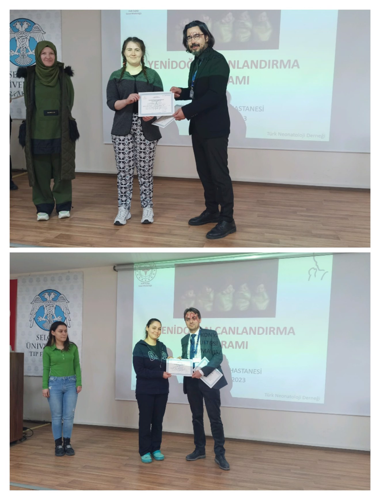 Halk Sağlığı Müdürlüğü’nden Dr. Canan Doğan ve NRP eğiticisi Leyla Pamuk, Dekan Yardımcımız, Anesteziyoloji ve Reanimasyon Anabilim Dalı Başkanı Prof. Dr. İnci Kara, Çocuk Sağlığı ve Hastalıkları Anabilim Dalı Öğretim Üyesi Başhekim Yardımcımız Doç. Dr. Murat Konak, Fakültemiz Çocuk Sağlığı ve Hastalıkları Anabilim Dalı Başkanı Prof. Dr. Resul Yılmaz, Dr. Emine Arslan, Dr. Beyza Özcan, Dr. Raziye Çelen, Dr. Musa Silahlı’nın eğitici olarak katıldığı programın sertifika töreni Beyhekim Toplantı Salonu’nda gerçekleştirildi.