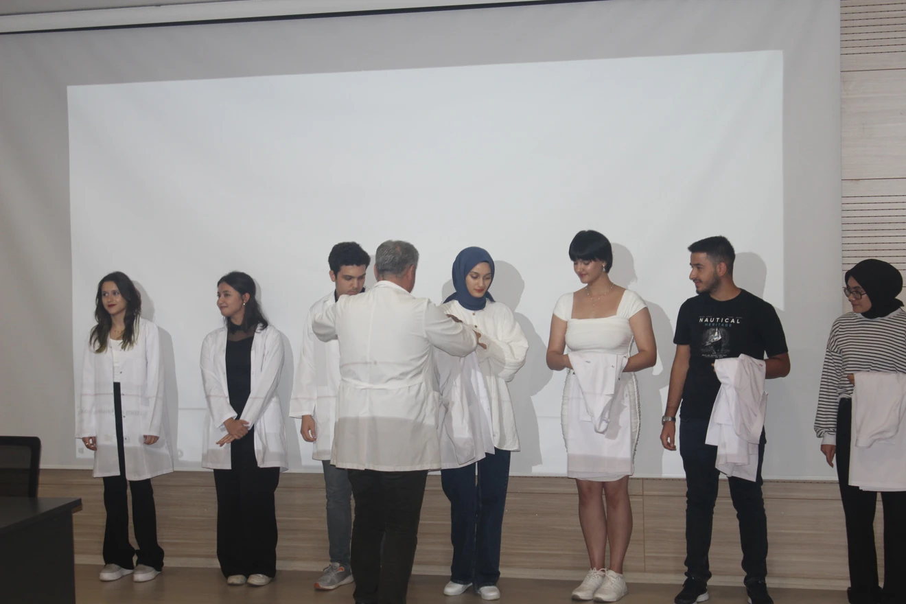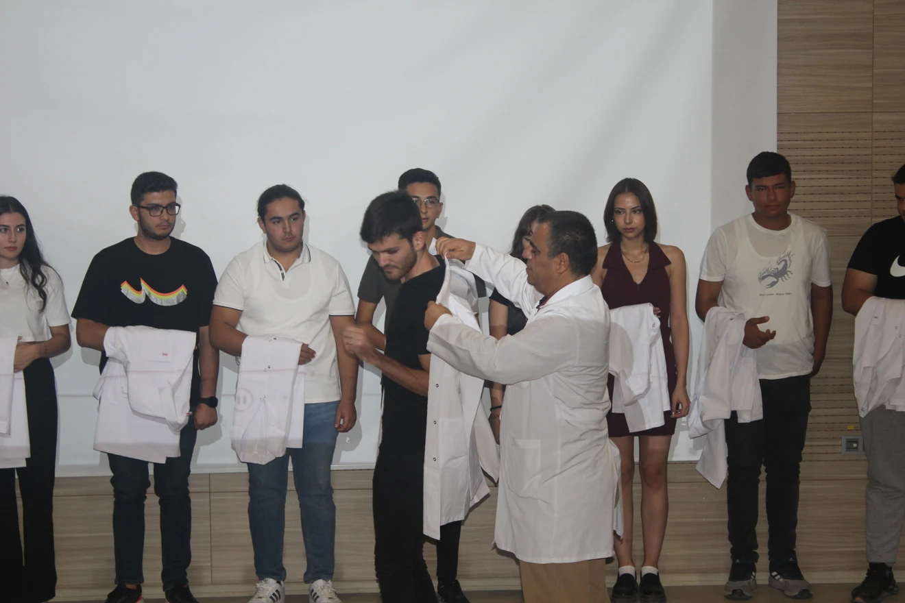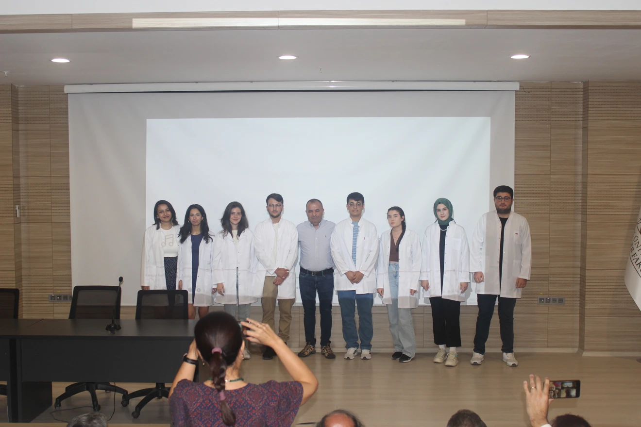 Fakültemizi yeni kazanarak Veteriner Hekimliğe ilk adımlarını atan birinci sınıf öğrencilerimize beyaz önlük giydirme töreni öğretim üyelerimiz ve velilerin katılımlarıyla fakültemiz Mehmet Akif Ersoy Konferans Salonumuzda gerçekleştirildi. Veteriner Hekimliği Tarihi ve Deontoloji Anabilim Dalı Başkanı Prof. Dr. Aşkın Yaşar hocamızın Veteriner Fakültesi Oryantasyon Eğitimi konulu sunumlarının ardından tüm öğrencilerimize beyaz önlükleri öğretim üyelerimiz tarafından giydirildi. Yeni meslektaş adaylarımıza aramıza hoş geldiniz der, öğrenim ve meslek hayatları boyunca başarılar dileriz.