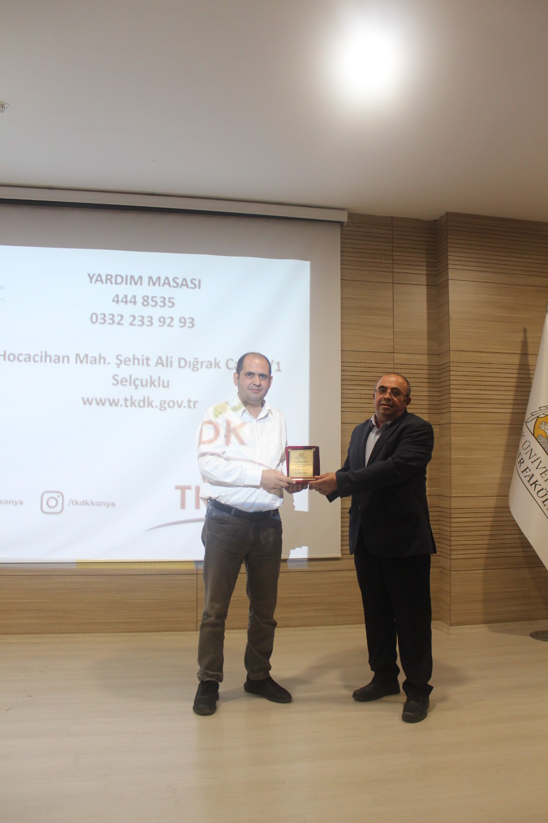 TKDK Konya İl Koordinatörü Yavuz UYSAL ve İletişim Uzmanı Hasan ÇOBAN tarafından intörn öğrencilerimize yönelik "Tarım ve Kırsal Kalkınmayı Destekleme Kurumu Destek ve Hibe Programları Bilgilendirme" konulu programımız fakültemiz Mehmet AKif Ersoy Konferans Salonunda gerçekleştirilmiştir. Programda TKDK Destek ve Hibe Başvuruları, Proje Değerlendirme Kriterleri, Kurumda İstihdam konularında detaylı bilgilendirme yapılmış olup, gelecek yılda da bu programların devamı ve proje hazırlaması konusunda intörn öğrencilerimize eğitim verilmesi kararlaştırılmıştır. Öğrencilerimizin gelişimine yönelik bu programların sayısı ve çeşitliliği önümüzdeki dönemlerde de artarak devam edecektir.