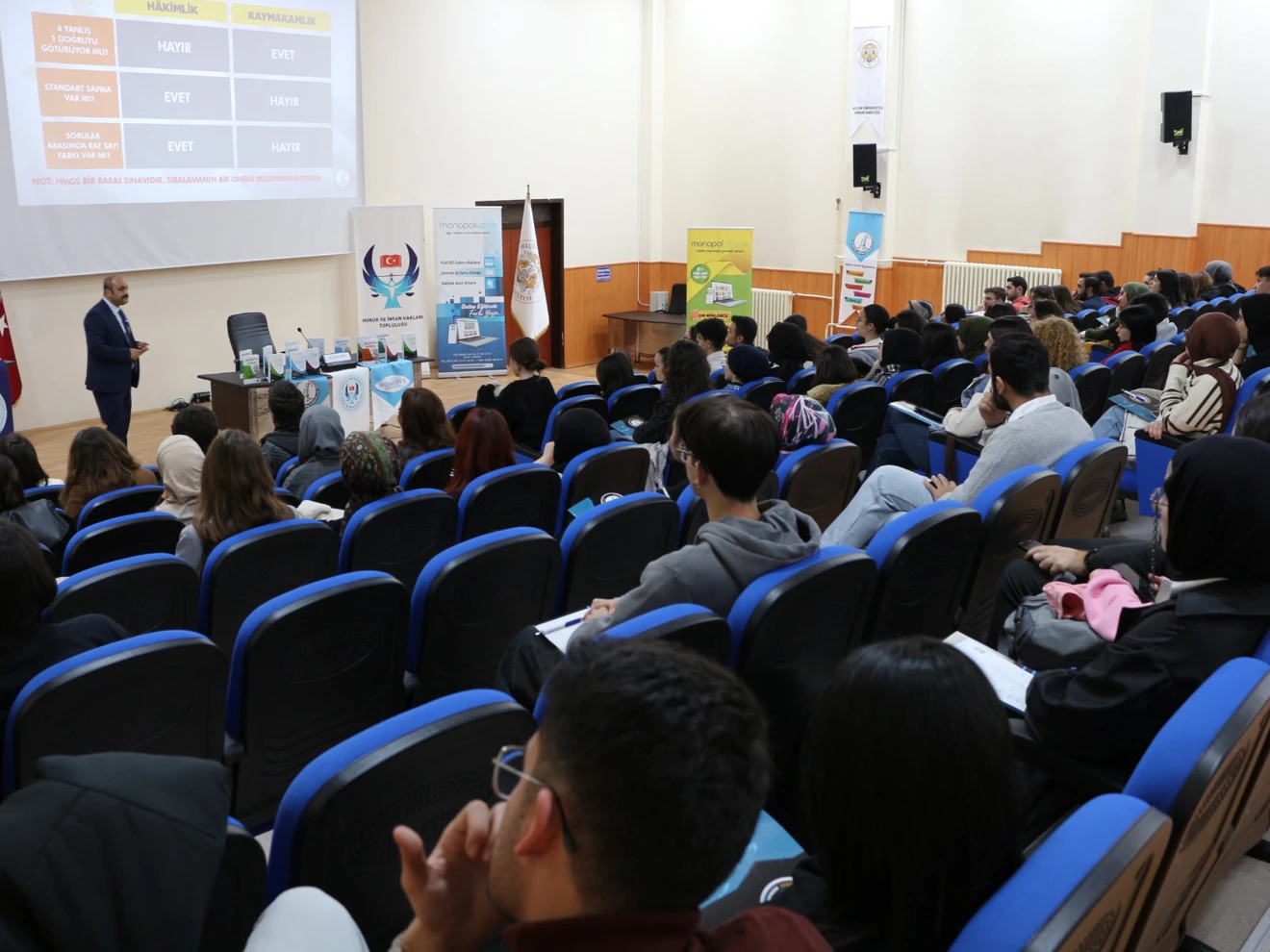 Hukuk ve İnsan Hakları topluluğumuz 23.10.2023 tarihinde hukuk fakültemiz konferans solununda hukuk fakülesi için hukuk mesleklerine giriş sınavı hakkında bir seminer gerçekleştirmiştir.