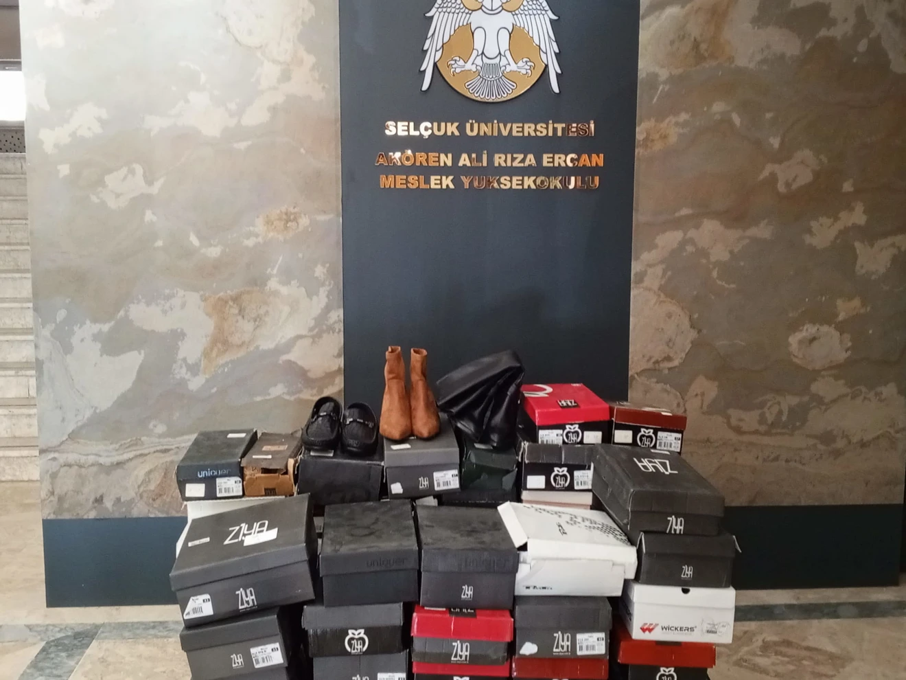 Hayırsever tarafından ihtiyaç sahiplerine dağıtılmak üzere Yüksekokul Müdürü Prof. Dr. Eray TULUKCU'ya verilen 100 çift kadın ve erkek ayakkabı yerlerine ulaştırılmak üzere dağıtılmıştır.