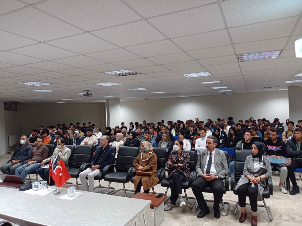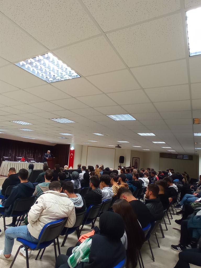Selçuk Üniversitesi Akören Ali Rıza Ercan MYO olarak Mevlid-i Nebi haftası münasebetiyle düzenlediğimiz programda Akören İlçe Müftüsü Sn. İsmail AYDIN, öğrencilerimize "Peygamberimiz, Cami ve İrşat" konulu konuşmasını yaptı. Peygamberimizin dünyayı teşrifleri asırlardır bu topraklarda milletimiz tarafından kutlanmaktadır. Sn. İlçe Müftüsü İsmail AYDIN bu konuyla ilgili olarak peygamberimiz, peygamber ahlakı, peygamberimizin doğum mucizeleri hakkında bilgi verdi. Hz. Peygamberin insanlığa sunduğu değerleri anlayıp hayatımızı onun yüce ahlakıyla güzelleştireceğimiz bir ömür dileğiyle sözlerine son veren AYDIN, öğrencilerimizin kandilini de kutladı. Programımız Yüksekokul Müdürü Sn. Prof. Dr. Eray TULUKÇU'nun Akören İlçe Müftüsü Sn. İsmail AYDIN'a Teşekkür Belgesi takdimiyle son buldu.