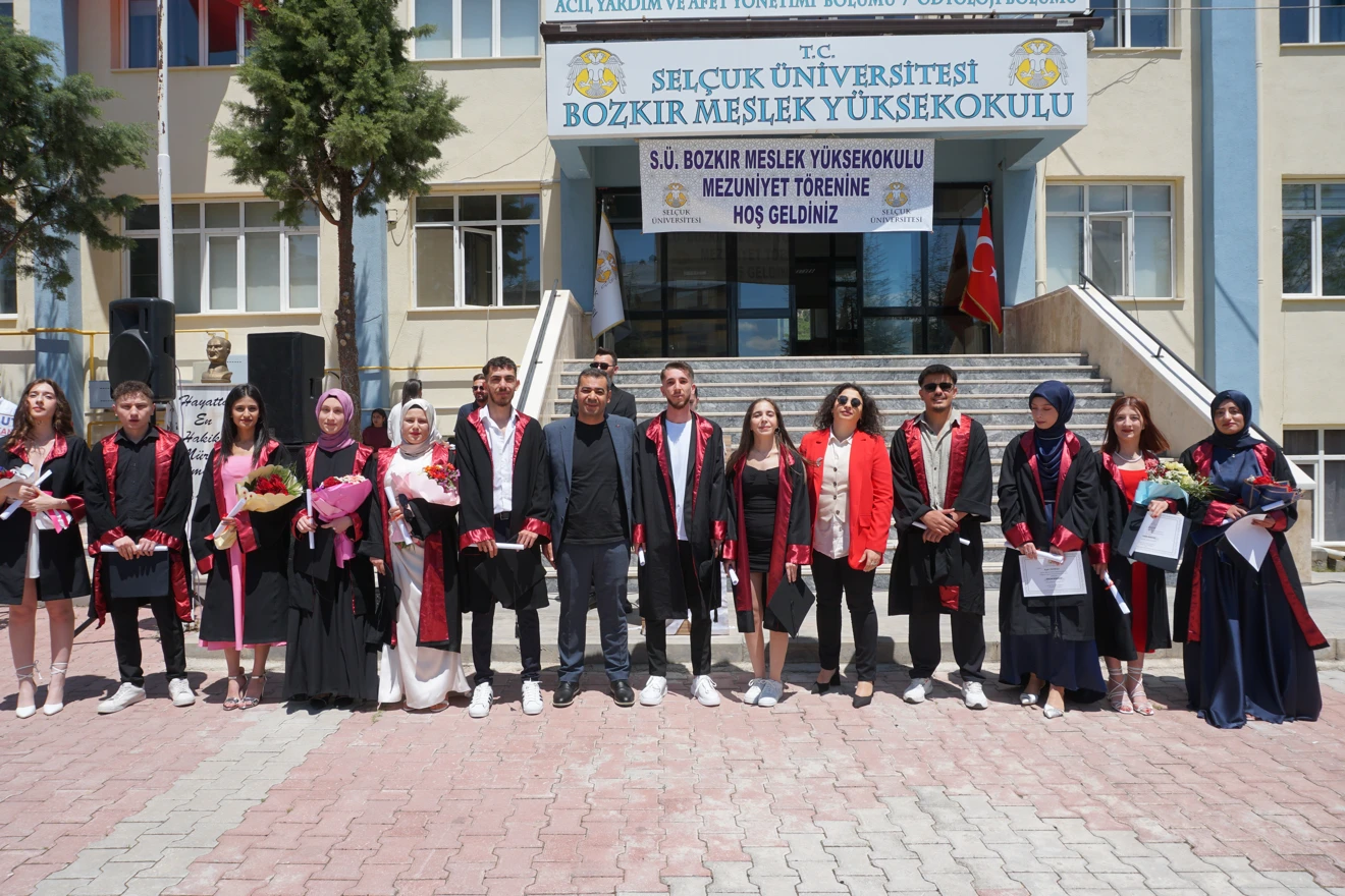 Bozkır Meslek Yüksekokulu’nun geleneksel mezuniyet töreni, bu yıl da renkli görüntülere sahne oldu. Akademik kadro, öğrenciler ve ailelerin katılımıyla gerçekleşen tören, 2024-2025 eğitim-öğretim yılının sonunda düzenlendi.