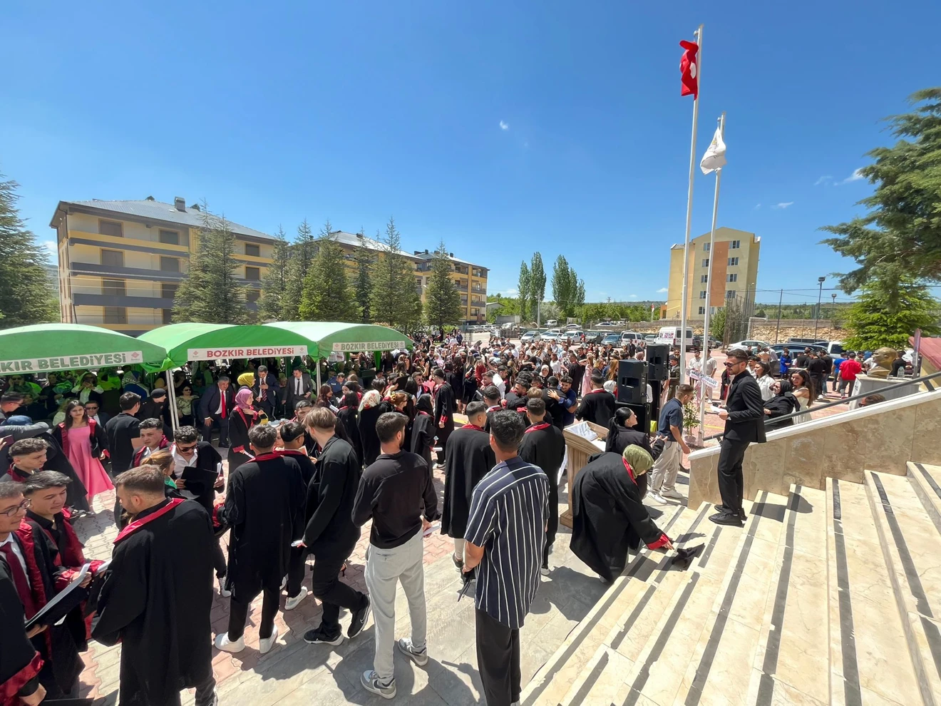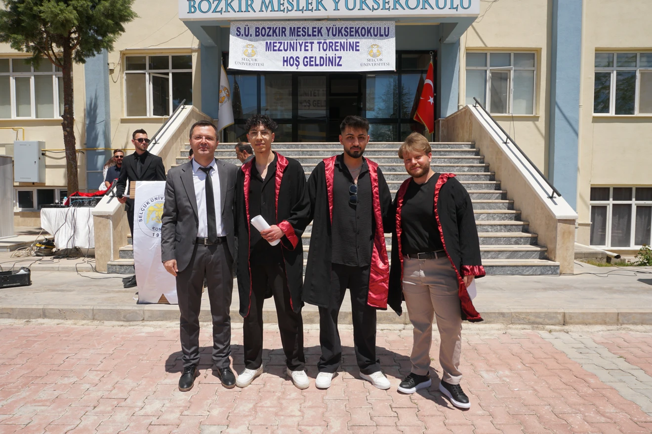 Mezuniyet töreninin ardından öğrenciler ve aileleri, hatıra fotoğrafları çektirerek bu özel günü ölümsüzleştirdi. Bozkır Meslek Yüksekokulu, gelecek yıllarda da mesleki eğitimdeki kalitesini sürdürerek yeni mezunlar yetiştirmeye devam edecek.