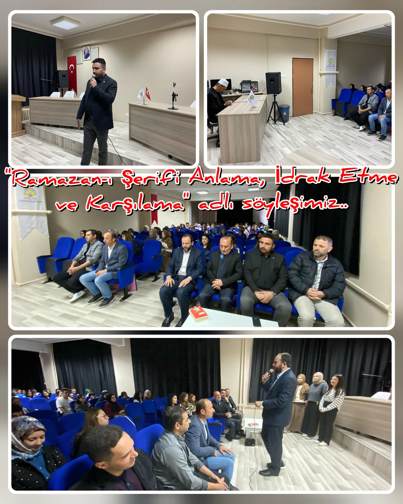 S.Ü. Bozkır MYO'muzda; Söyleşimize Katılan Konya İl Müftülüğü Gençlik Koordinatörü Sn. Abdülkerim TEMİZCAN'a, Bozkır İlçe Müftüsü Sn. Emin YÜKSEK'e ve Bozkır Merkez Camii İmam Hatibi Sn. Mehmet ÇOLAK hocalarımıza teşekkür ederiz.