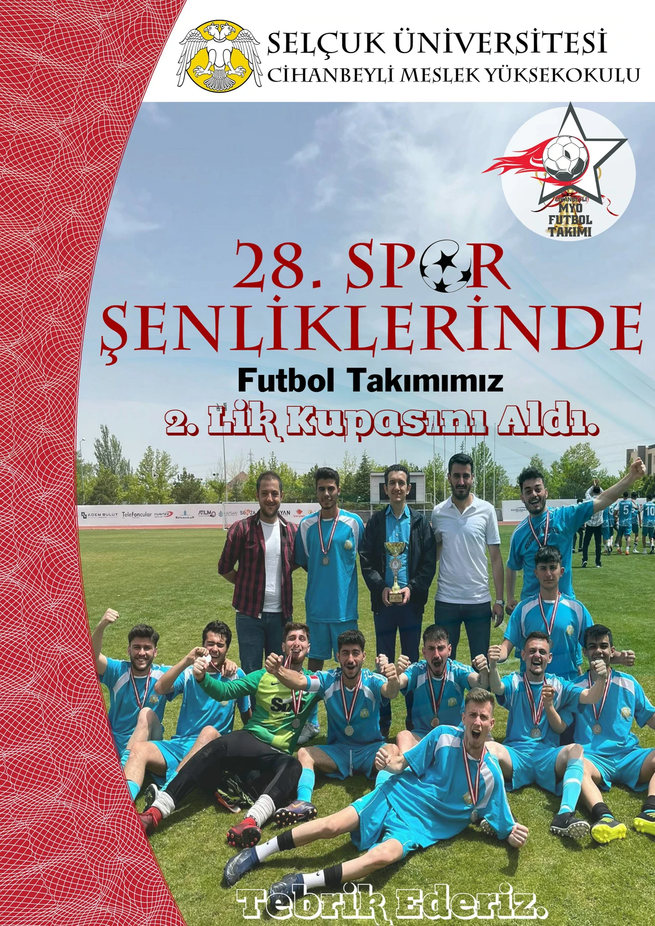 Meslek Yüksekokulumuz Futbol Takımı, Beyşehir Ali Akkanat MYO Futbol Takımın ile Final maçında 2. Olmuştur. 10.05.2024