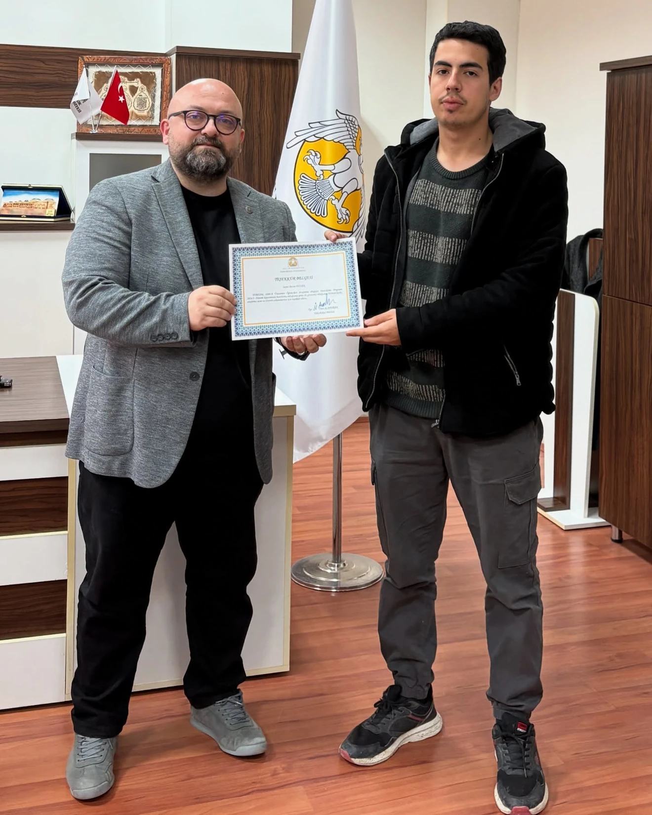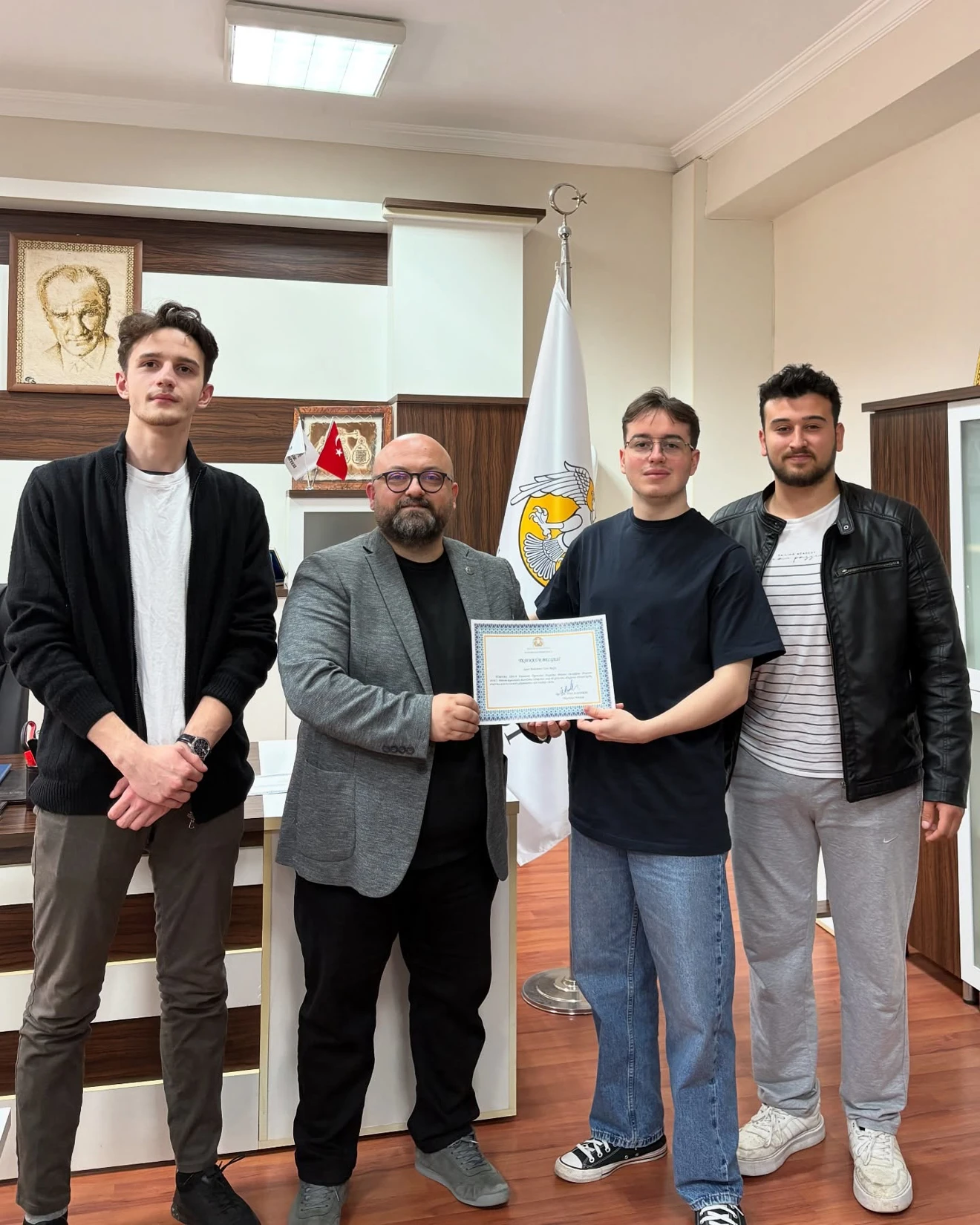 TÜBİTAK 2209-A Öğrenci Araştırma Projeleri Destekleme Programı kapsamında projeleri kabul edilen öğrencilerimize, Yüksekokul Müdürümüz Öğr. Gör. Ümit Albayrak tarafından teşekkür belgeleri takdim edildi.