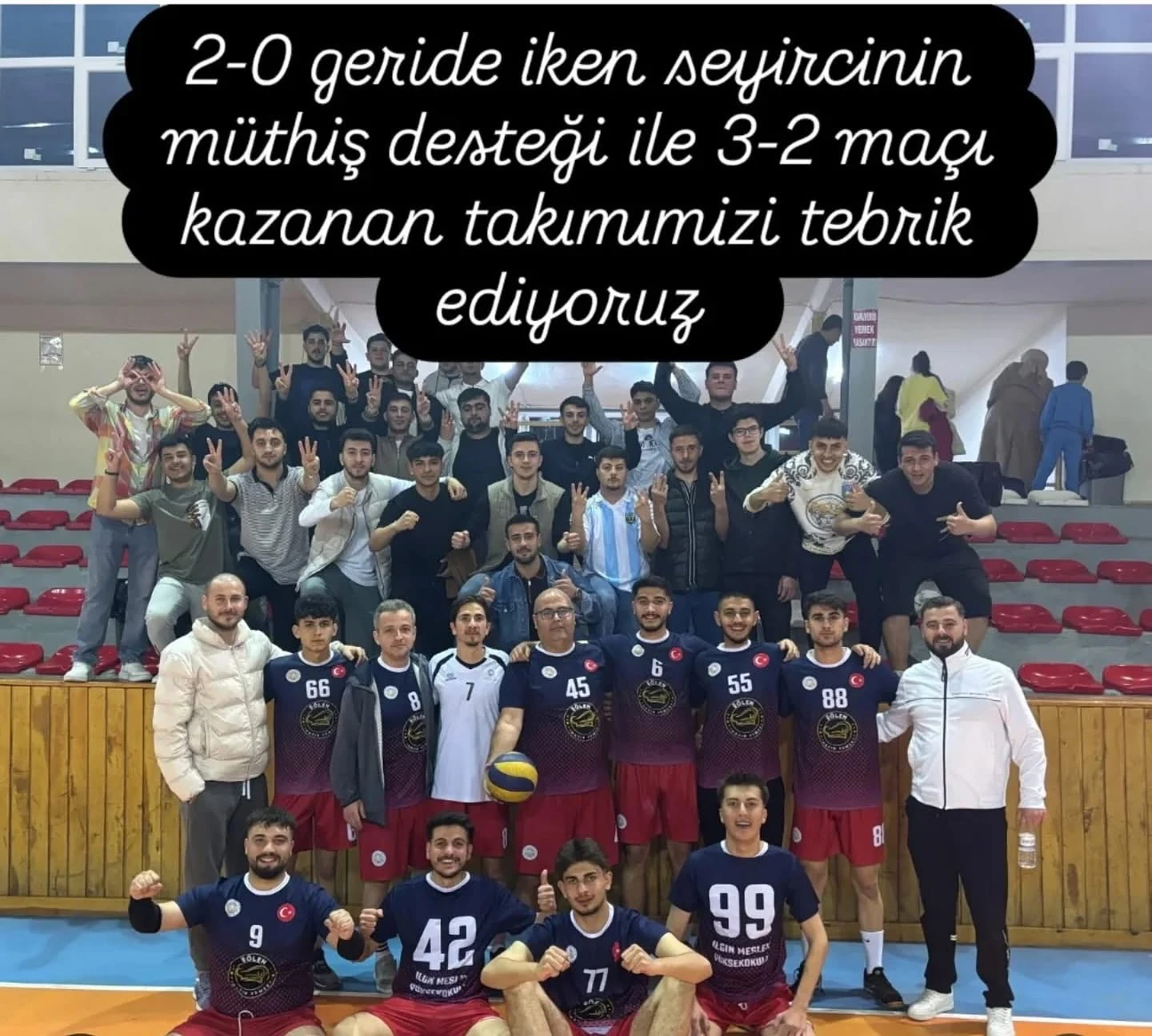 Yüksekokul Sekreterimiz Fatih Taşlı’nın kaptanlığı ve liderliğinde sahaya çıkan takımımız, SPORKONYA Voleybol Turnuvası Ilgın Etabı Çeyrek Finalinde Atabey Spor karşısında 2-0 geriye düşmesine rağmen seyircimizin büyük desteğiyle maçı 3-2 kazanarak yarı finale yükseldi!