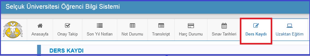 Tüm öğrencilerimiz güz veya bahar yarıyılı dersleri başlamadan www.selcuk.edu.tr ana sayfasındaki Öğrenci menü sayfasında bulunan Akademik Takvim’de belirtilen Kayıt Yenileme tarih aralığında o yarıyıl almak istediği ders veya derslerin seçimlerini Öğrenci Girişi'nden (https://obis.selcuk.edu.tr/ ) yapmak zorunludur.