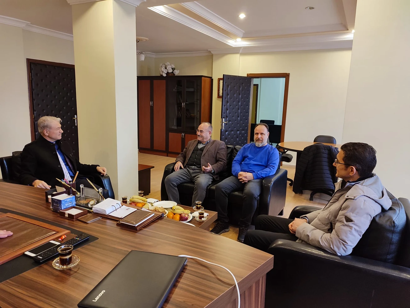 Cihanbeyli Meslek Yüksekokul Müdürü Dr.Öğr.Üyesi Mahmut ÜNALDI, Meslek Yüksekokul Sekreteri Erdoğan ARDIÇ ve Müdür Yardımcısı Dr.Öğr.Üyesi Ayhan UYAROĞLU Okul Müdürümüz Sayın Doç.Dr.Alaaddin Selçuk KÖYLÜOĞLU ‘ na nezaket ziyaretinde bulundular.