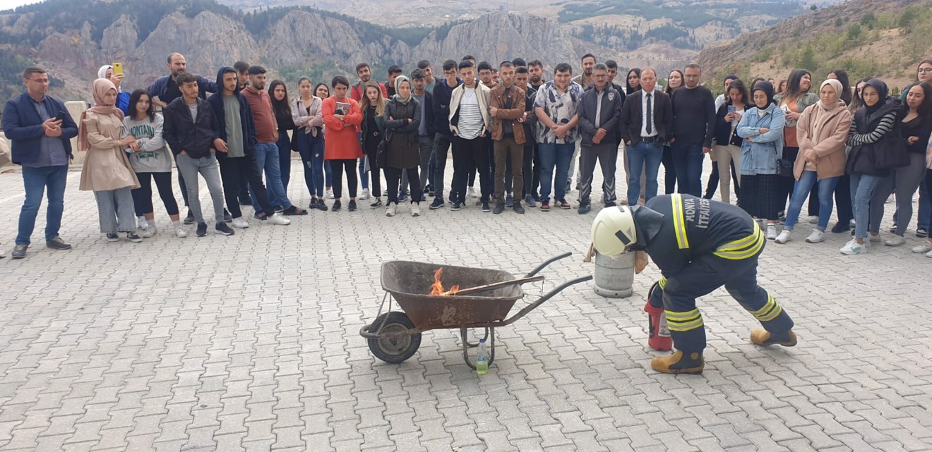 Meslek üksekokulumuzda yangın güvenliği eğitimi ve tatbikatı düzenlendi.