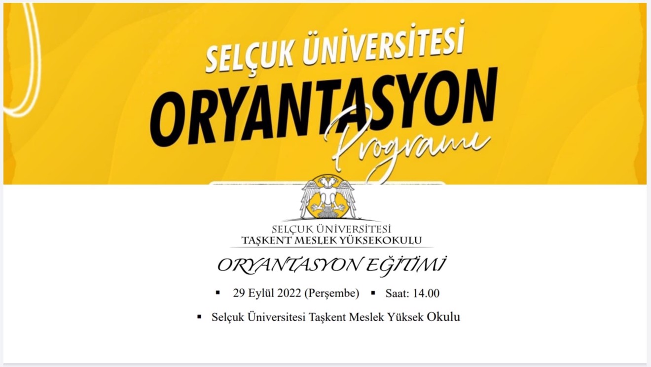 Selçuk Üniversitesi Taşkent Meslek Yüksekokulunda üniversite eğitimine yeni başlayan öğrenciler Oryantasyon Eğitimi’nde bir araya geldi. MYO Müdürü Prof. Dr. Osman TUGAY, MYO öğretim elemanları ve öğrencilerin katılımıyla gerçekleştirilen programda MYO Müdürü Prof. Dr. Osman TUGAY Selçuk Üniversitesi ve Taşkent Meslek Yüksekokulu hakkında bilgiler paylaşarak öğrencilerin sorularını yanıtladı. Ayrıca öğretim elemanları eşliğinde öğrencilerimize Meslek Yüksekokul yerleşkesi tanıtıldı.