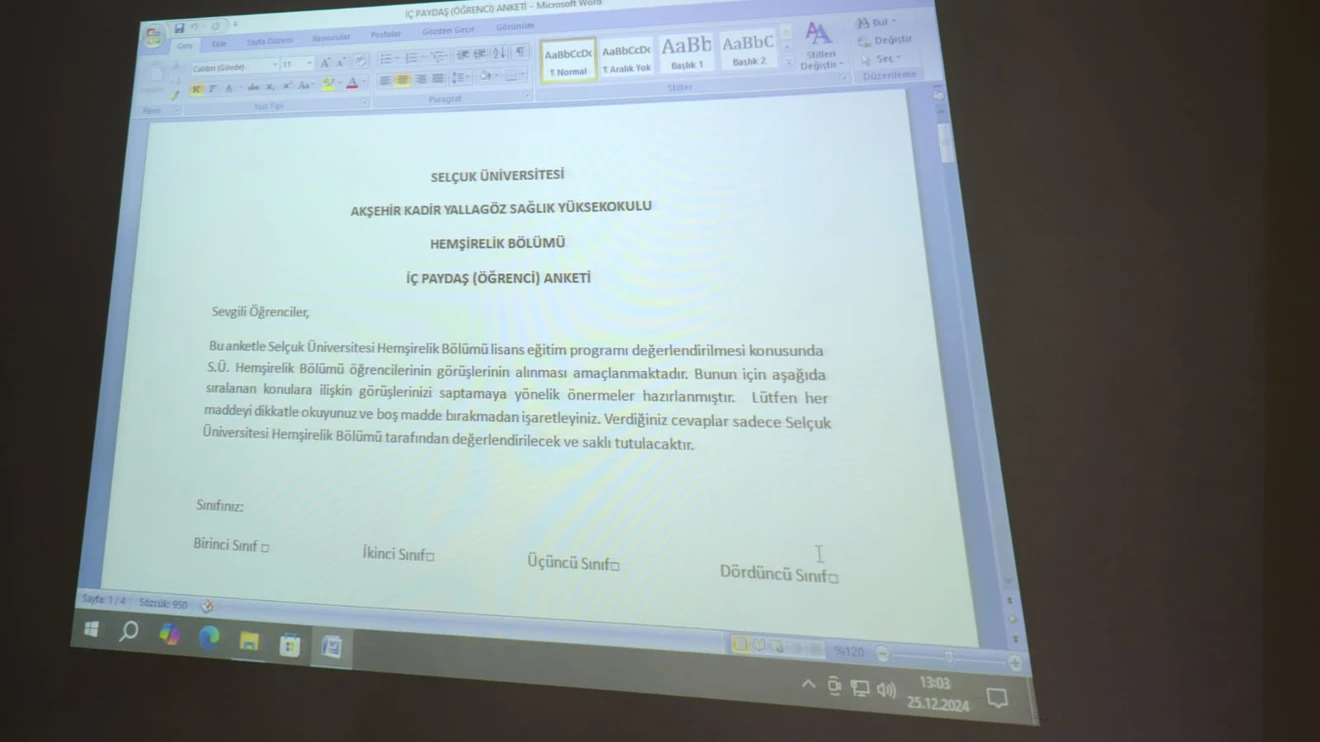 25.12.2024 Çarşamba günü saat 09.15 te Yüksekokulumuz Konferans salonunda Müdür Yardımcımız Dr.Öğr.Üyesi Selma İNFAL KESİM'in katılımları ile iç paydaş Öğrenci toplantısı yapılmıştır.