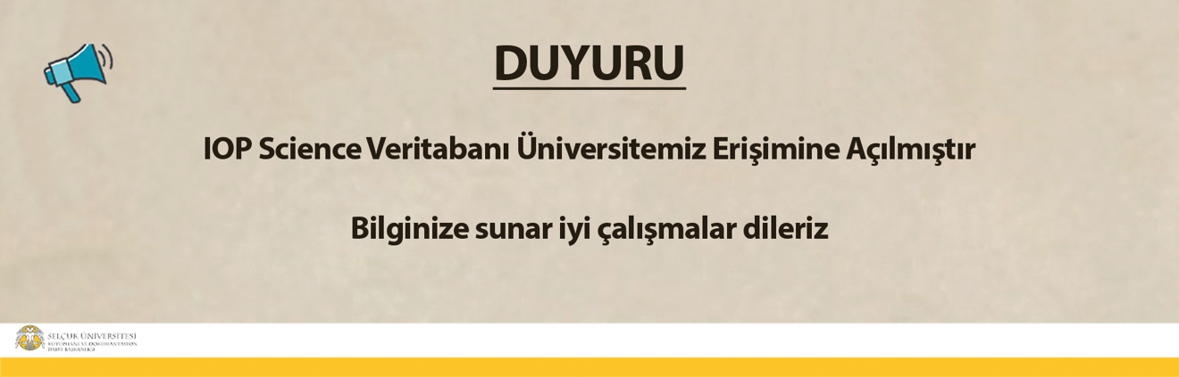 IOP Publishing tarafından sunulan IOP Science veritabanı, ULAKBİM EKUAL kapsamında Üniversitemiz erişimine açılmıştır.