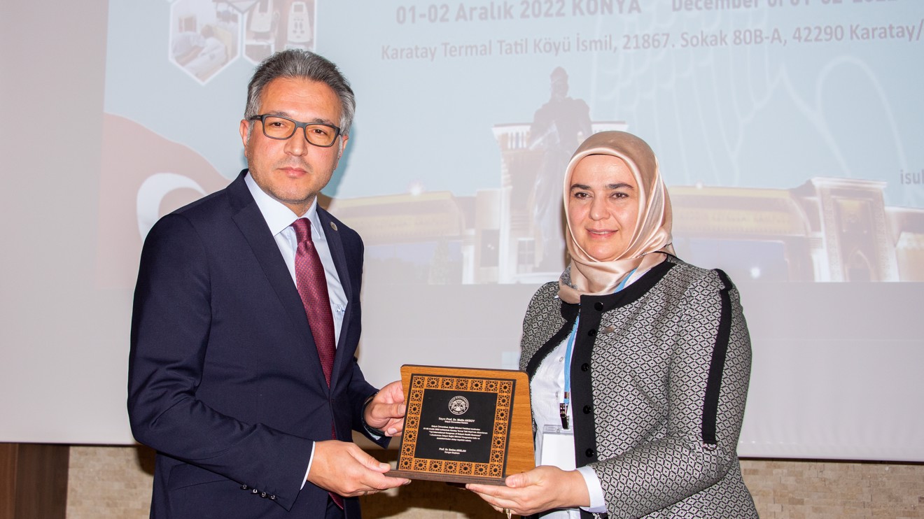 Konuşmaların ardından Sağlık Bilimleri Fakültesi Dekanı Prof. Dr. Emine Arslan; Selçuk Üniversitesi Rektörü Prof. Dr. Metin Aksoy, Rektör Yardımcısı Prof. Dr. Ahmet Tuğrul Polat, Karatay Belediye Başkanı Hasan Kılca, Karatay Termal Tatil Köyü Genel Müdürü Serkan Ersoy, Karatay Termal Tatil Köyü Satış ve Pazarlama Müdürü Burhan Yurt’a plaket takdim etti.