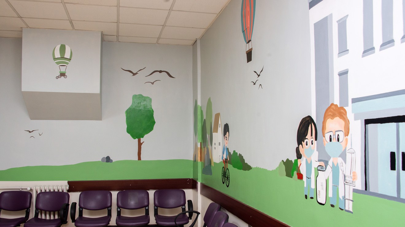 Çocuklara hastaneyi keyifli hale getirmek için duvar boyama etkinliği düzenlendi