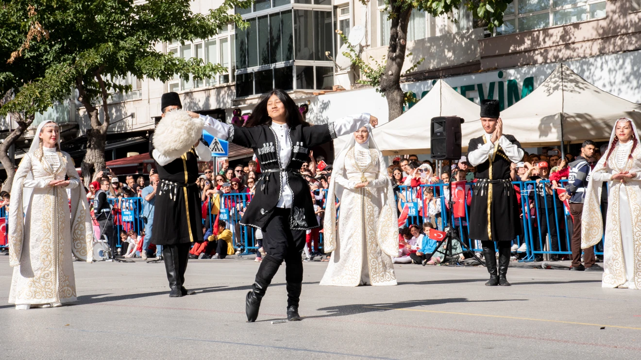 Feritpaşa Caddesi’ndeki tören, ilk ve ortaöğretim okulları arasında düzenlenen Cumhuriyet konulu resim, şiir ve kompozisyon yarışmalarında dereceye giren öğrencilere ödüllerinin verilmesi, Hava Kuvvetleri Komutanlığı 3. Ana Jet Üs Komutanlığı muharip uçak geçişi ve tören geçişiyle sona erdi.