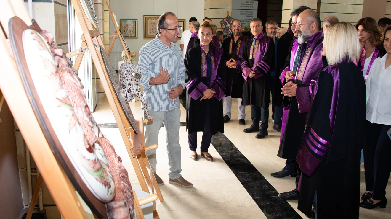 Öğrencilere diplomalarının takdim edildiği tören kapsamında Mezuniyet Sergisi’nin de açılışı yapıldı. Mezun olan 148 öğrencinin dönem projeleri kapsamında hazırladığı 500’den fazla eser, büyük beğeni kazandı.