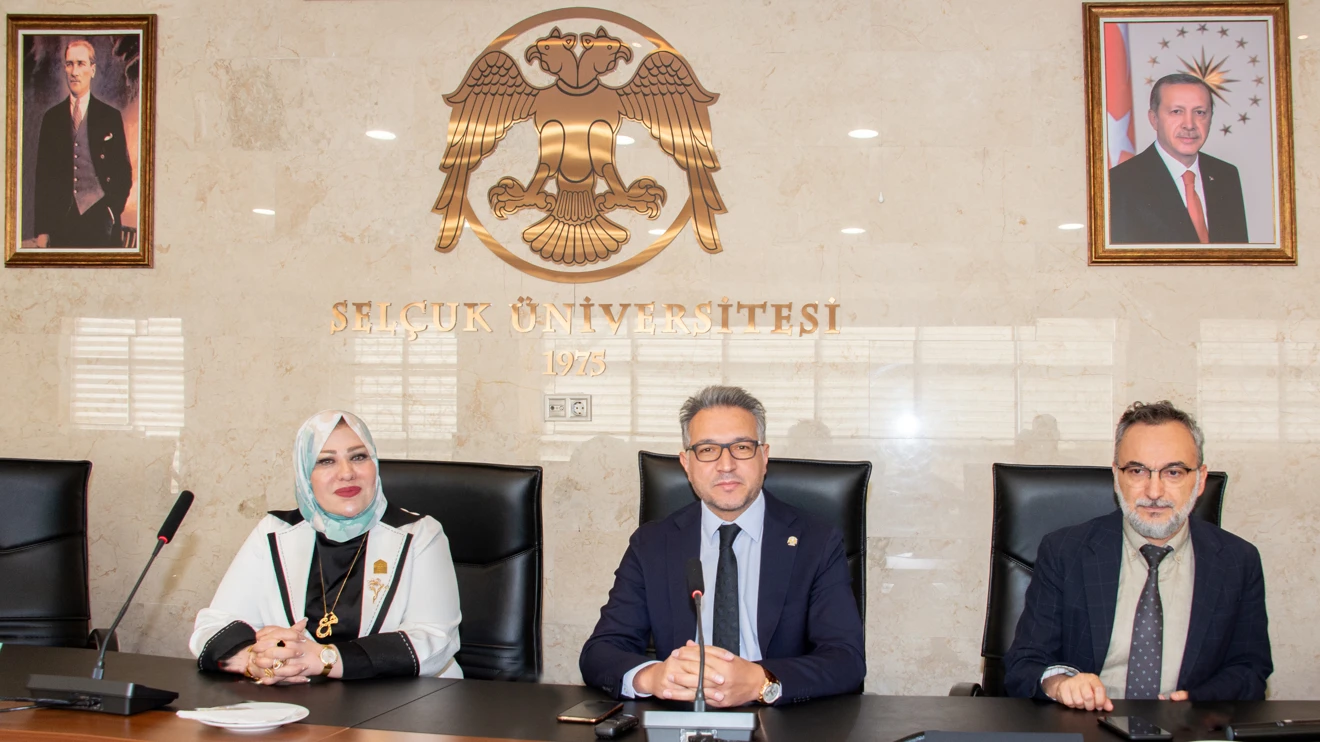 Irak Kuzey Teknik Üniversitesi Rektörü Prof. Dr. Alyaa A. Al-Attar ve beraberindeki heyet, ilk olarak Selçuk Üniversitesi Rektörü Prof. Dr. Metin Aksoy ile bir araya geldi.