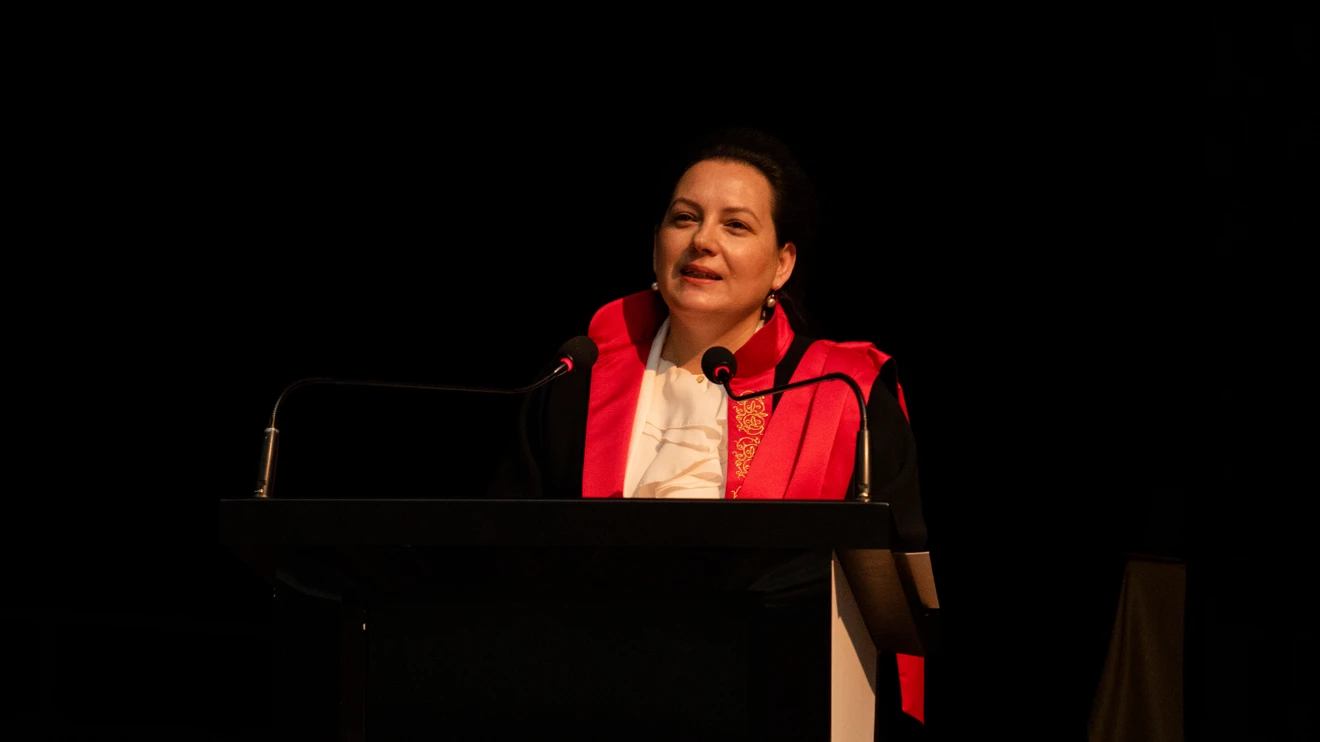 Sultan Alparslan Kültür Merkezinde gerçekleştirilen törenin açılış konuşmasını Fakülte Dekanı Prof. Dr. Rabia Köse Doğan yaptı. Mimarlık ve Tasarım Fakültesinin, çağın gereksinimlerine ve gelişen teknolojiye uyum sağlayan, sanat ve bilimin ışığında, araştırmacı, sorumluluk sahibi, meslek pratiği olan, sorun çözme odaklı, mesleki etik değerleri koruyan, ulusal ve uluslararası yetkinliğine sahip meslek insanları yetiştirmeyi vizyon edindiğini belirten Prof. Dr. Doğan, “Bu vizyon ile Üniversite ve Fakültemizin ulusal ve uluslararası düzeyde iş birlikleri ile düzenlenen akademik, bilimsel, sanatsal faaliyetleri, proje çalışmaları, uygulama alanları ve değişim programları ile öğrencilerimiz meslek hayatlarına en güçlü şekilde hazırlanıyor.” diye konuştu.