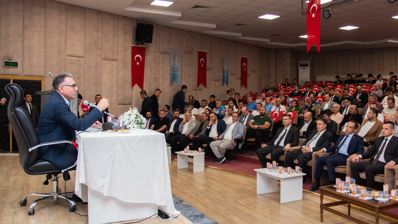 Ülkü Ocakları Konya İl Başkanı Türker Türkoğlu, Konya Esnaf ve Sanatkarlar Odaları Birliği Konferans Salonu’nda gerçekleştirilen programın açılış konuşmasında Rektör Prof. Dr. Metin Aksoy’a katılımlarından dolayı teşekkür etti.