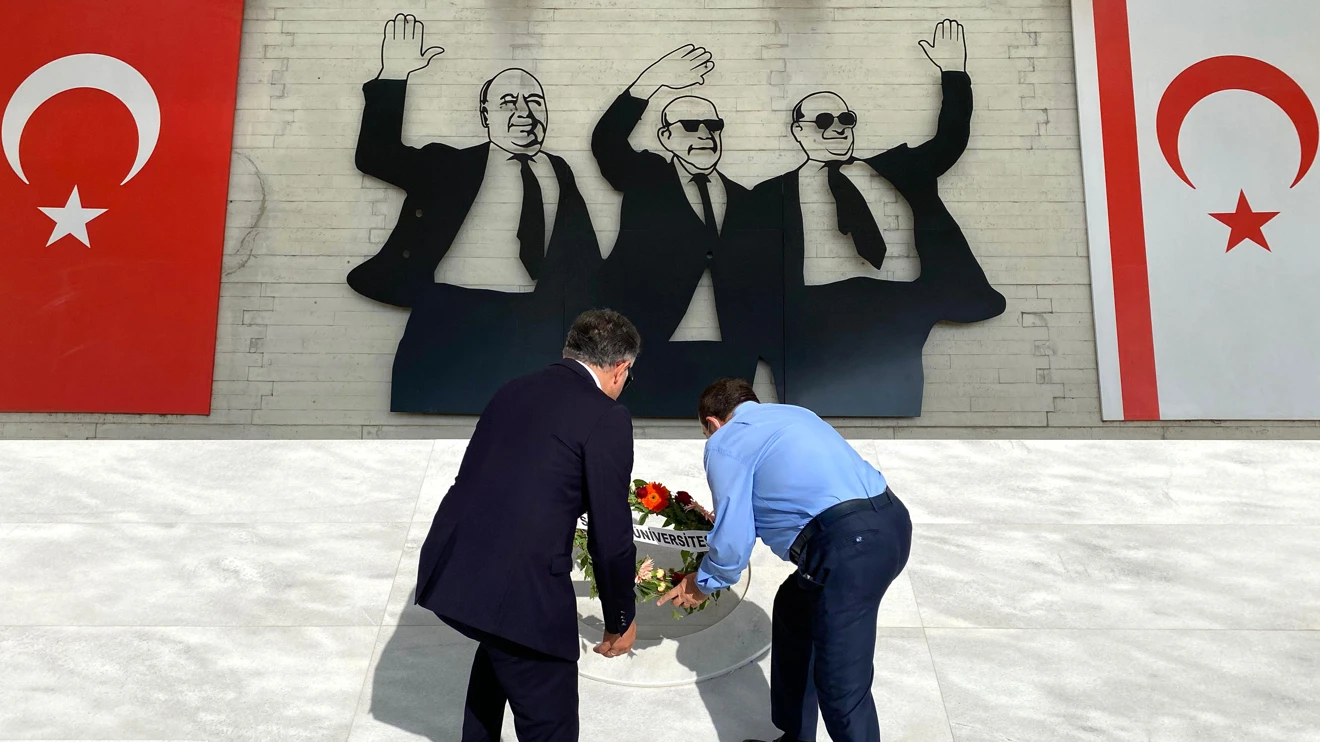 Rektör Aksoy, Kuzey Kıbrıs Türk Cumhuriyeti Eski Maliye Bakanı Serdar Denktaş ile birlikte Kurucu Cumhurbaşkanı Rauf Raif Denktaş’ın mezarına ziyaret gerçekleştirdi.