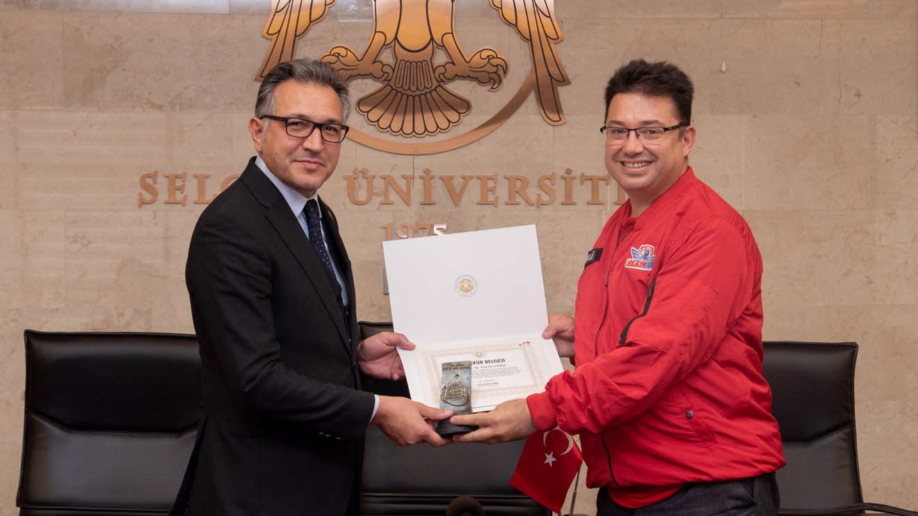Selçuk Üniversitesi (SÜ) Rektörü Prof. Dr. Metin Aksoy, Türkiye Teknoloji Vakfı ile Sanayi ve Teknoloji Bakanlığı yürütücülüğünde Samsun-Çarşamba Havalimanı’nda düzenlenen Havacılık, Uzay ve Teknoloji Festivali TEKNOFEST 2022’de derece elde eden takımlara başarı belgesi verdi.