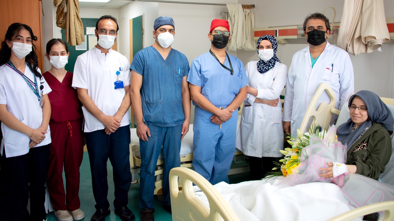 Selçuk Üniversitesi Rektörü Prof. Dr. Metin Aksoy; Rektör Yardımcısı Prof. Dr. İlhan Çiftci ve Selçuk Üniversitesi Tıp Fakültesi Hastanesi Başhekimi Prof. Dr. Mustafa Koplay ile birlikte, tedavisi göğüs cerrahisi servisinde yürütülen Fen Fakültesi Arş. Gör. Tenzile Erbayram’ı ziyaret etti. Geçmiş olsun dileklerini ileten Prof. Dr. Aksoy, “Rabbim şifa versin. En kısa zamanda ailenize, öğrencilerinize kavuşacaksınız. Rabbim; devletimize, milletimize güç, kuvvet versin. Devletimizin ortaya koymuş olduğu adımla Tenzile Erbayram Hocamızı ambulans uçakla Konya’ya getirebildik. Cumhurbaşkanımız Sayın Recep Tayyip Erdoğan’a, Sağlık Bakanlığımıza çok teşekkür ediyorum. Devletimizin gücünü zor zamanlarda, yurt dışında daha çok hissediyoruz. Şimdiden iyi bayramlar diliyorum.” dedi. Arş. Gör. Tenzile Erbayram da Rektör Prof. Dr. Metin Aksoy’a teşekkür etti.