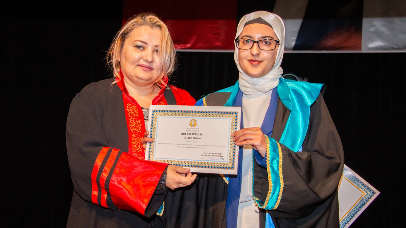 Mezuniyet törenini gerçekleştirmenin mutluluğunu yaşadıklarını dile getiren Eğitim Fakültesi Dekanı Prof. Dr. Kamil Arı şunları söyledi: “Fakültemiz, ikinci mezunlarını vermenin haklı gururunu yaşıyor. Bu gurur sadece Üniversitemize ve Fakültemize ait değil, çocuklarının bugünlere gelmesinde her türlü fedakarlığı gösteren siz aile büyüklerine ve şu anda eğitimini başarıyla tamamlayan mezunlarımıza aittir. Türkiye Yüzyılı’nın yeni mimarları olacak sevgili mezunlarımız! Bu tören aslında dört yıllık bir eğitimin sonunda sizleri yeni bir yolculuğa uğurlamadır. Herkesin mutlaka bir hedefi vardır. Doğru hedefe ulaşmak için de aldığınız eğitim, sahip olduğunuz irade, azim ve kararlılığınız rehberiniz olacaktır. Aldığınız eğitimlerden sonra inanıyoruz ki doğru seçimler yapabileceksiniz. Burada geçirdiğiniz yıllar içerisinde sizlere, bilgiye ulaşmanın yollarını ve sırlarını vermeye çalıştık. Sadece cevap bulmayı değil, sorgulama becerisini de kazandırmaya çalıştık. Farklı fikirlere sahip insanlarla birlikte yaşama kültürünü öğretmeye gayret ettik. Hayatınızın bir döneminde yeniden karşılaştığımızda sizleri birer öğretmen, güzel işler başaran mutlu ve huzurlu bireyler olarak görmenin gururu bizlere yetecektir. Herkese faydalı birlik ve beraberlik duygusuna yürekten inanan bireyler olmanızı diliyoruz. Bunu en çok da milletimiz, devletimiz ve ülkemiz için istiyoruz. Mezuniyetinizi tebrik ediyor, sizlerin bugünlere gelmenizde payı olan ailelerinizi, ülkenizi ve Üniversitemizi unutmamanızı talep ediyorum. Bundan sonraki hayatınızda hepinize sağlıklı, mutlu ve başarılı bir ömür diliyorum.”