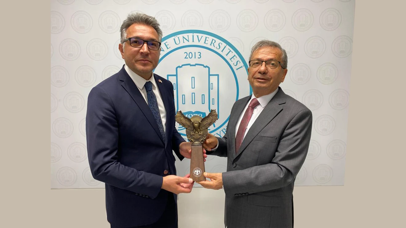 İki üniversite arasında yapılacak iş birliklerinin görüşüldüğü ziyaret, hediye takdimiyle sona erdi.