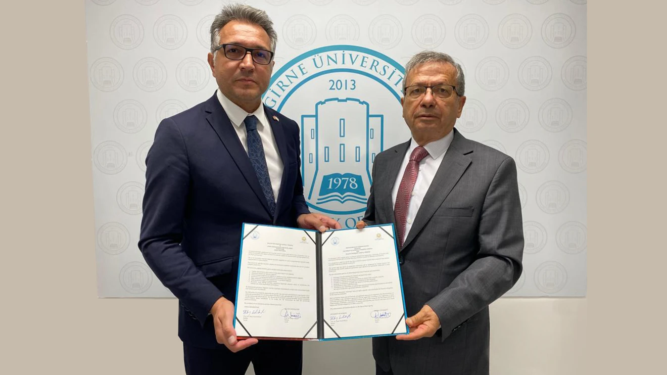 Selçuk Üniversitesi Rektörü Prof. Dr. Metin Aksoy ve Girne Üniversitesi Rektörü Prof. Dr. İlkay Salihoğlu, Girne Üniversitesinde düzenlenen törende akademik ve bilimsel çalışmalar kapsamında öğretim elemanı ve öğrenci değişiminin yanı sıra bilgi ve yayın paylaşımını içeren iş birliği protokolü imzaladı.