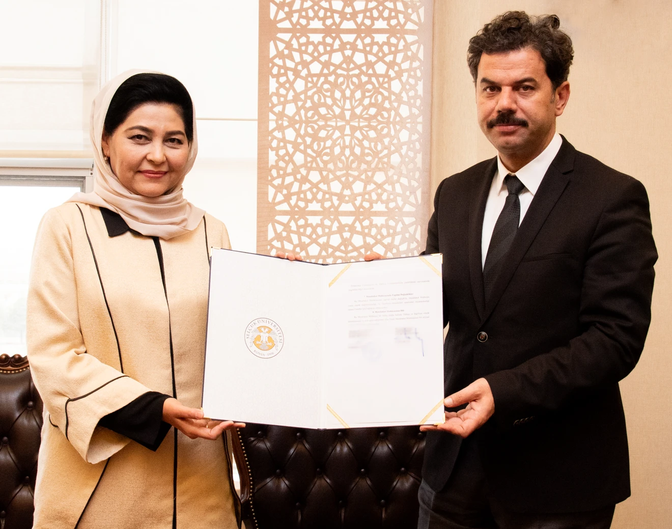 Mutabakat anlaşması, Selçuk Üniversitesi Rektörü Prof. Dr. Hüseyin Yılmaz ve Özbekistan Sosyal ve Siyasal Bilimler Enstitüsü Vekili Doç. Dr. Salimahan Eşonova tarafından imzalandı.