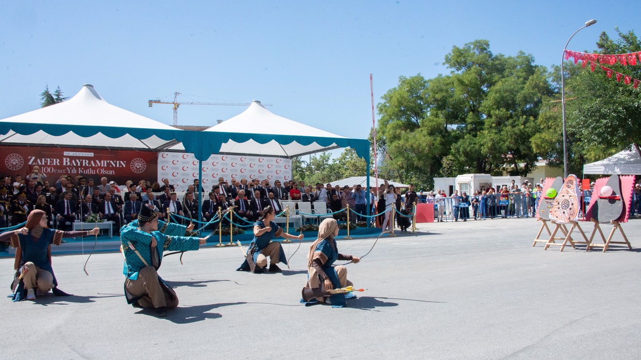 Selçuk Üniversitesi (SÜ) bünyesinde faaliyetlerini sürdüren Geleneksel Okçuluk Topluluğu ile Anadolu Kafkas Kartalları Topluluğu, 30 Ağustos Zafer Bayramı’nın 100. yıl dönümü kutlamaları kapsamında Konya’da düzenlenen törene katıldı. Öğrenci toplulukları sundukları gösterileriyle katılımcılardan yoğun alkış aldı.