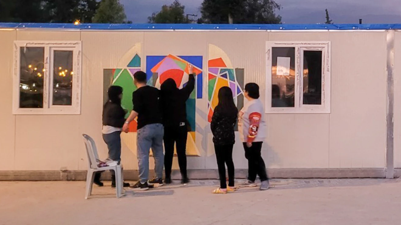 Konteyner kentteki kütüphanenin dış cephesini görsel olarak yeniden tasarlayan öğrenciler, İskenderun’da 6 Şubat gecesi saat 04.17’de düzenlenen “Sessiz Yürüyüş” adlı etkinliğe de katıldı.