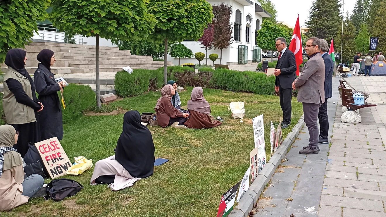 Selçuk Üniversitesi Rektörü Prof. Dr. Metin Aksoy, Gazze’de İsrail’in uyguladığı soykırıma tepki göstermek için bir araya gelen öğrencilerle buluştu.