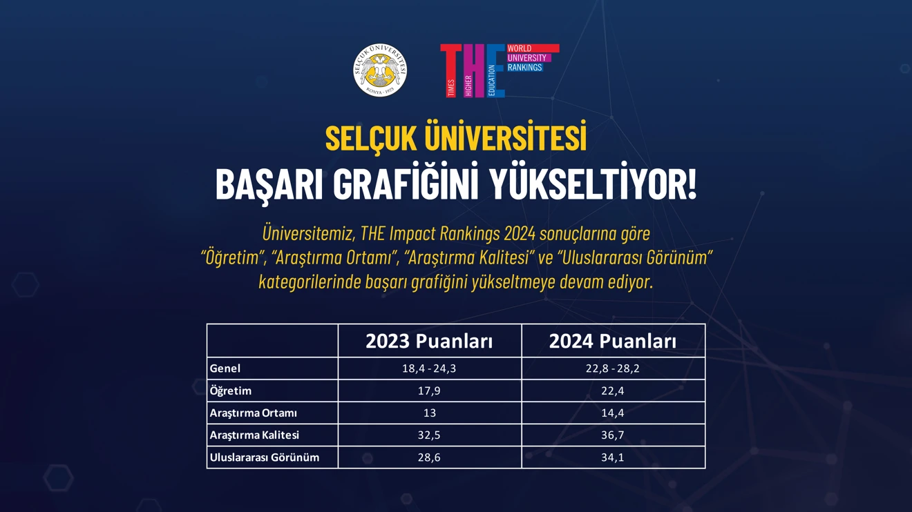 Son yıllarda uluslararası sıralamalarda aldığı derecelerle başarı grafiği giderek yükselen ve adından sıkça söz ettiren Selçuk Üniversitesi, THE 2024 Üniversite Sıralaması’nda Türkiye’de 19’uncu olarak önemli bir başarıya daha imza attı.