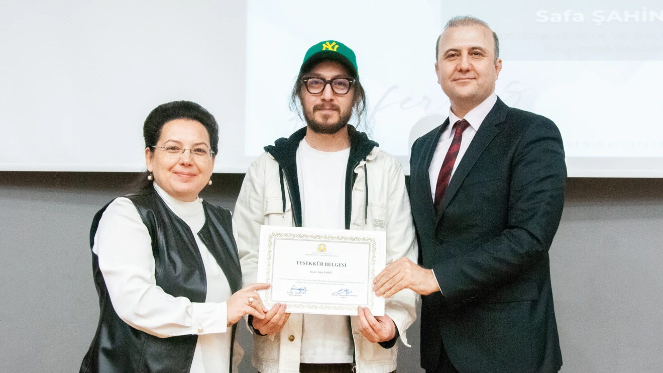 SÜ Mimarlık ve Tasarım Fakültesi Dekanı Prof. Dr. Rabia Köse Doğan ile Ayakkabı Tasarımı ve Üretimi Bölüm Başkanı Prof. Dr. Ahmet Uzun, derslere girerek öğrencilere katkı sağlayan Şahin’e teşekkür belgesi takdim ettiler.