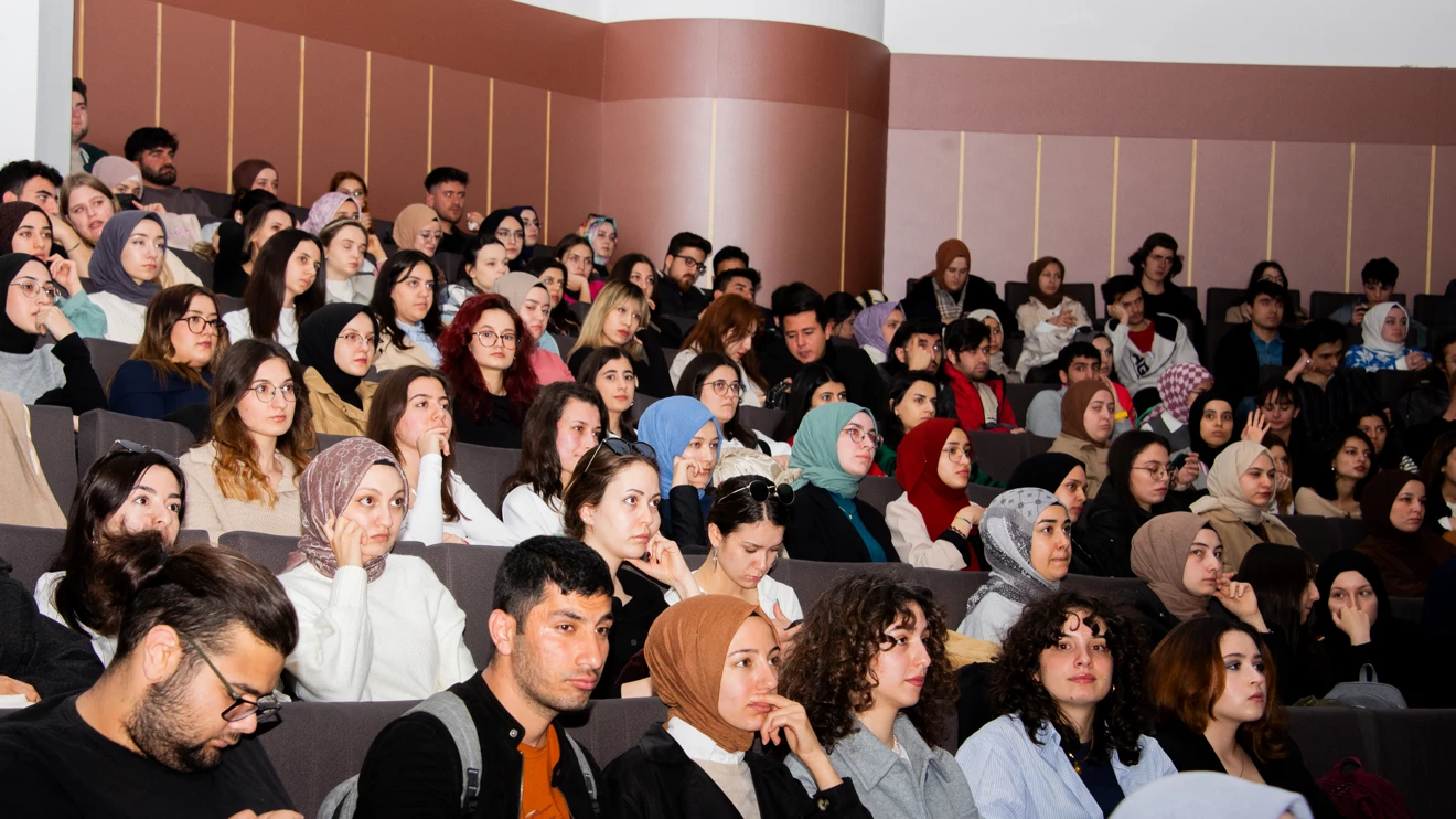 Söyleşiye Selçuk Üniversitesi Genel Sekreteri Prof. Dr. Kamil Beşoluk, dekanlar, müdürler, akademik ve idari personel ile öğrenciler katıldı.