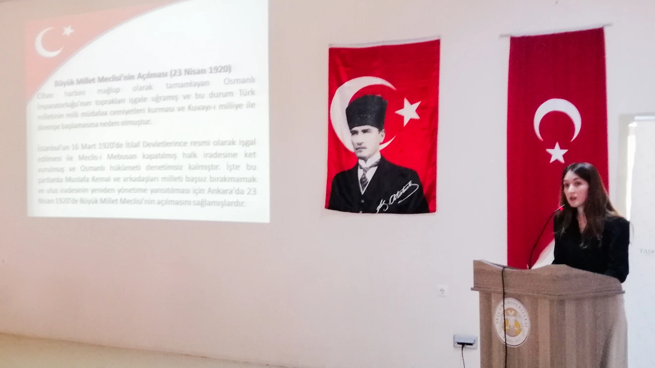Selçuk Üniversitesi Silifke Taşucu Meslek Yüksekokulunda Cumhuriyetimizin 100. Yılında 100 Etkinlik kapsamında “Cumhuriyet ve 100 Yıllık Birikim” adlı konferans gerçekleştirildi. Konferansa konuşmacı olarak katılan Silifke Taşucu Meslek Yüksekokulu Öğretim Üyesi Doç. Dr. Özkan Demir, Cumhuriyetin ilan edilme sürecini anlattı.