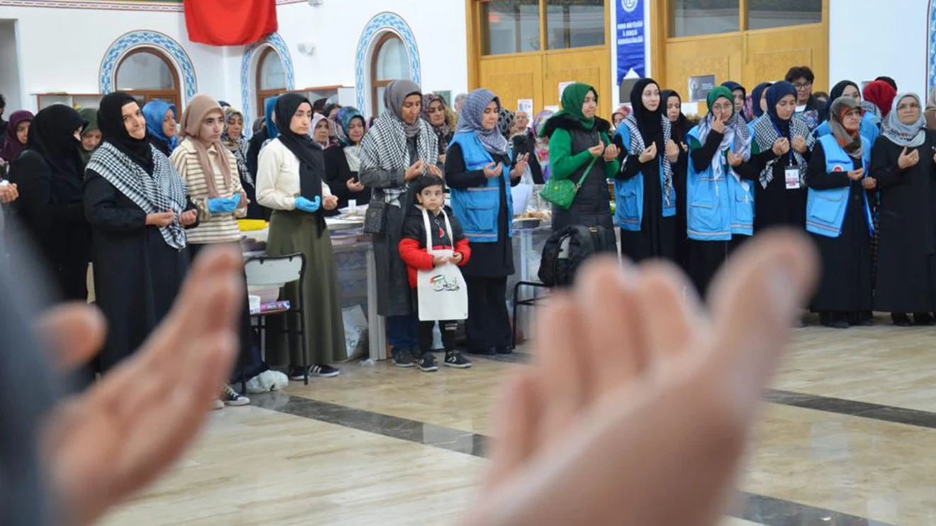Daha sonra eller semaya açılarak Filistin, Gazze ve tüm Müslümanlar için dua edildi. Çarşıdan elde edilen gelirin tamamı Filistin’e gönderilecek.