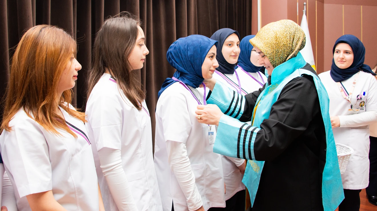 Konuşmaların ardından Ebelik Bölümü birinci sınıfta eğitim gören 103 öğrenciye yaka kartları öğretim elemanları tarafından takdim edildi. Öğrenciler, Selçuk Üniversitesi Tıp Fakültesi Hastanesinde mesleki uygulamaya başlayacak.