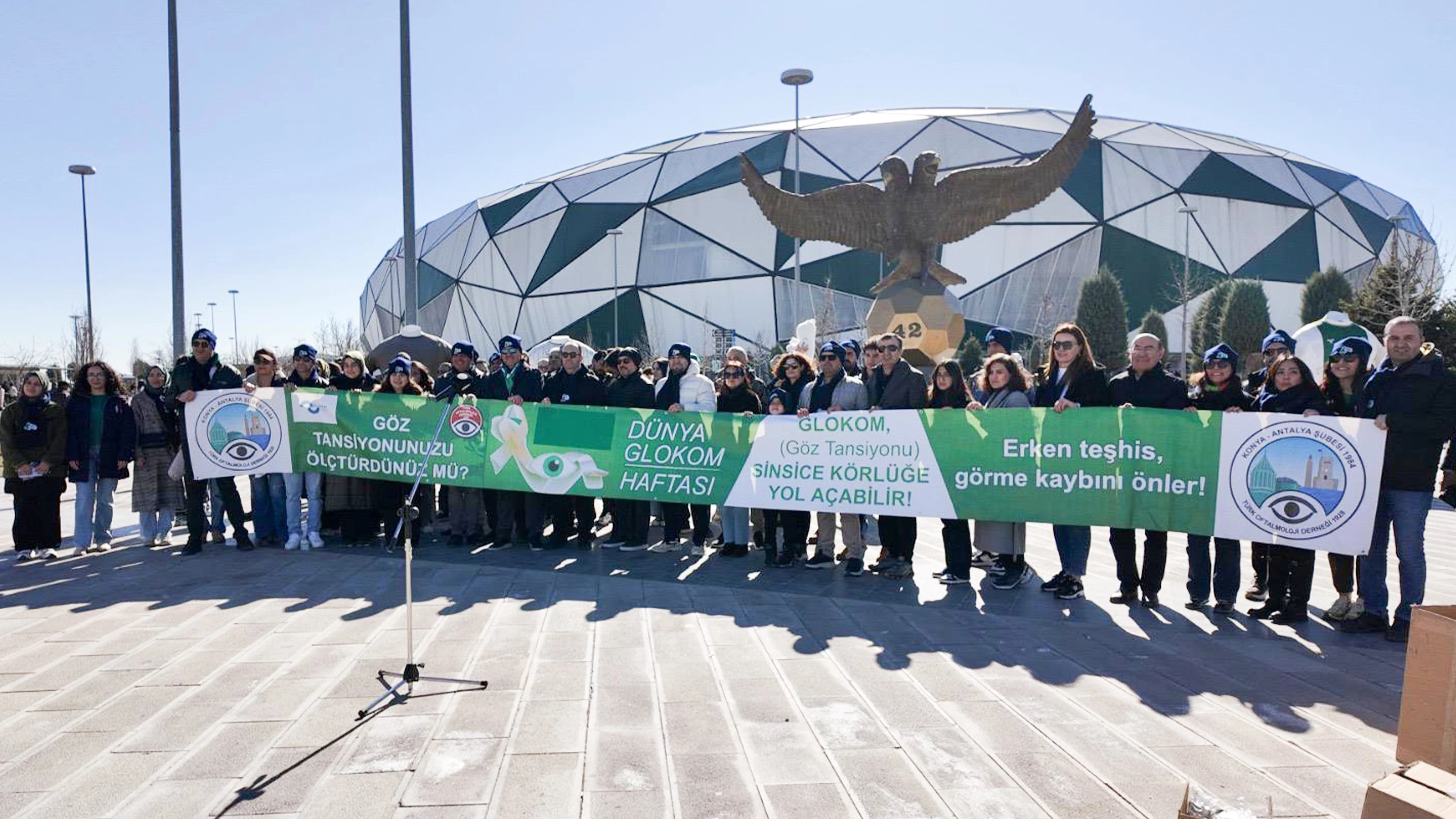 Glokom farkındalığı kapsamında ayrıca TÜMOSAN Konyaspor ile Kasımpaşa karşılaşması öncesinde Konya Büyükşehir Stadyumu önünde açılan pankartlarla glokomda erken teşhisin önemine dikkat çekildi.