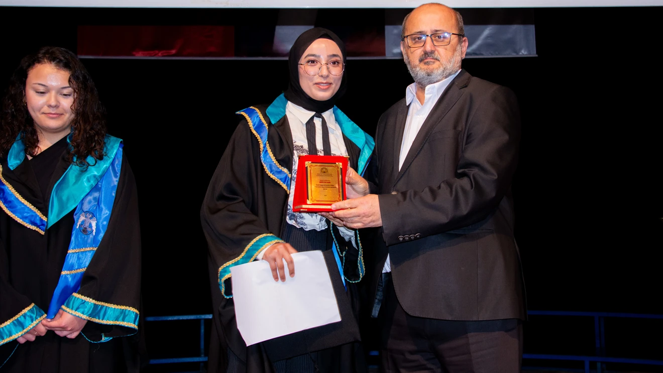Konuşmaların ardından dereceye giren öğrencilere plaket ve hediyeleri takdim edildi. Mezun olan öğrencilere belgelerinin verildiği tören, kep atma seremonisiyle sona erdi.