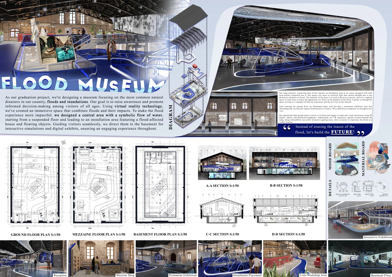 Proje dersi yürütücüleri Selçuk Üniversitesi Mimarlık ve Tasarım Fakültesi Dekanı Prof. Dr. Rabia Köse Doğan, Arş. Gör. Özlem Yurtgün ve Arş. Gör. Kübra Malçok, öğrencileri “İç Mimari Proje Dersi” kapsamında Doğal Afet Müzesi başlığı altında yürütülen Sel ve Taşkın Müzesi İç Mimari Projesi ile ulusal çapta elde ettikleri ödülden dolayı tebrik etti.