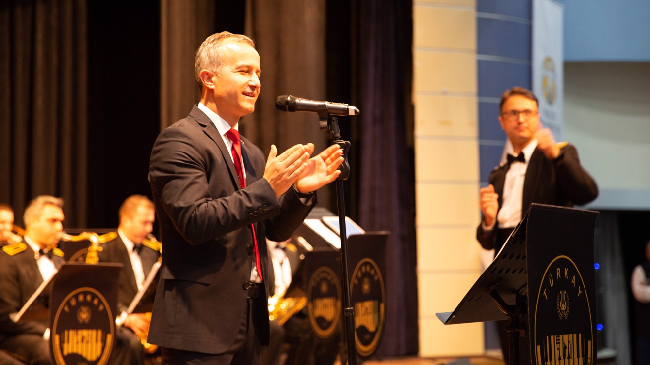Konser, Rektör Yardımcısı Prof. Dr. Ahmet Tuğrul Polat’ın Orkestra Şefi Bando Binbaşı Kerimcan Nayman’a hediye takdimiyle sona erdi.